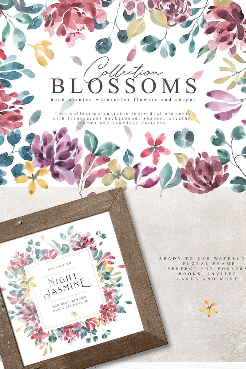Download Иллюстрация "Blossoms Collection - Illustration" / Blossoms Collection - Illustration - Иллюстрация на тему графика blooming blossoms flower watercolor watercolour pattern seamless wedding leaf leaves logo logos invitation card rsvp summer spring holiday invite branding