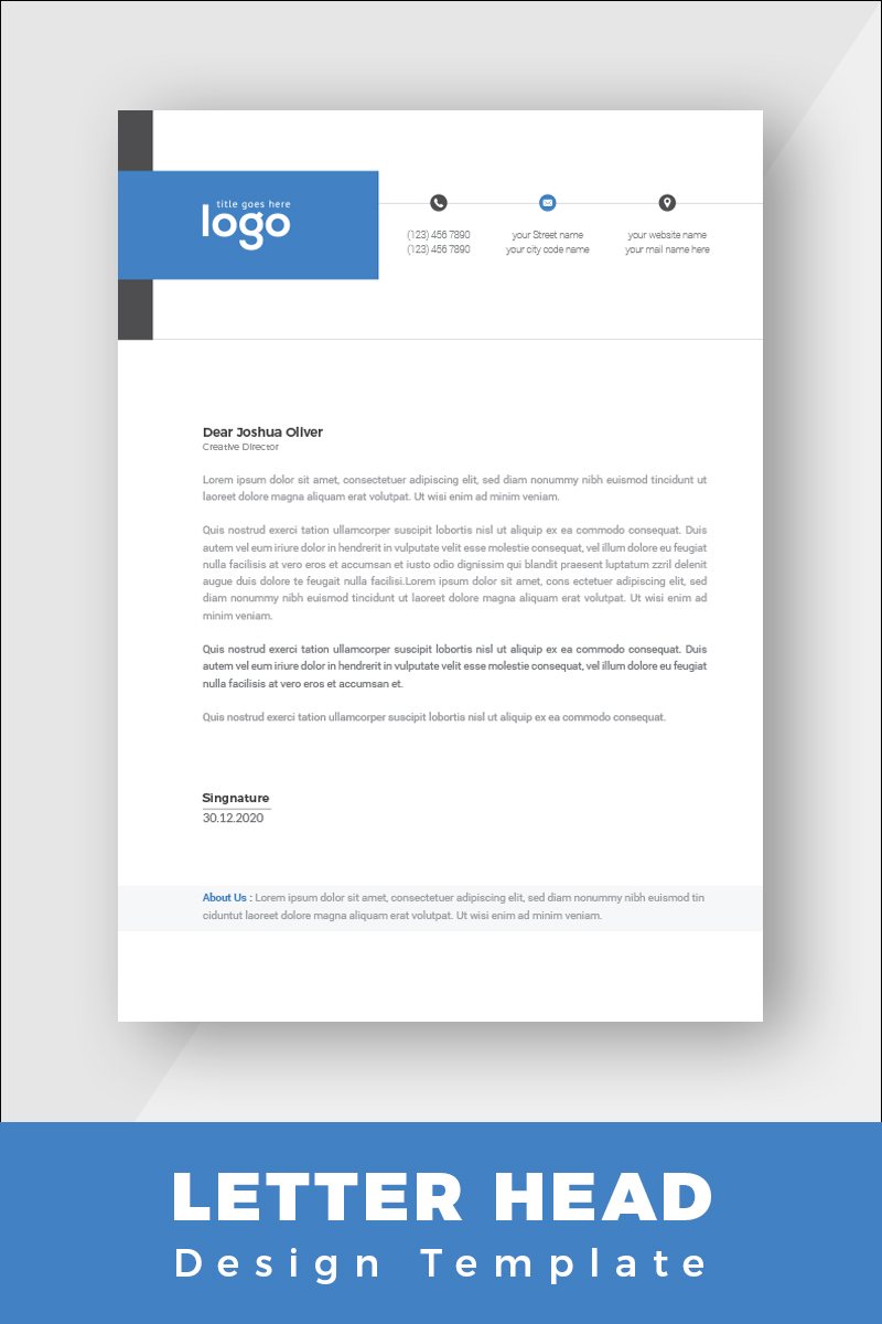 Download Фирменный стиль "Blue and Black Minimal Letterhead - Corporate Identity Template" / Blue and Black Minimal Letterhead - Corporate Identity Template - Фирменный стиль на тему графика illustration logo style letter corporate print layout creative abstract corporation contract business letterhead headline vector company design identity paper modern