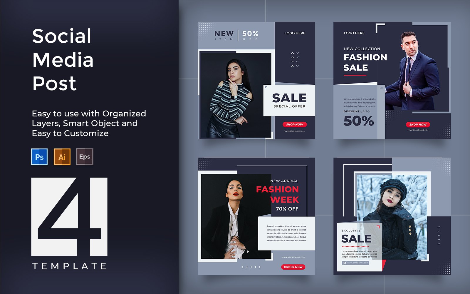 Download Фирменный стиль "Blue - Modern Social Media Post Promotion - Corporate Identity Template" / Blue - Modern Social Media Post Promotion - Corporate Identity Template - Фирменный стиль на тему графика sale,offer,clothing,fashion,banner,business,cover,social,media,marketing,promotion,shop,pack,blue,modern,web,instagram,square,trendy,market