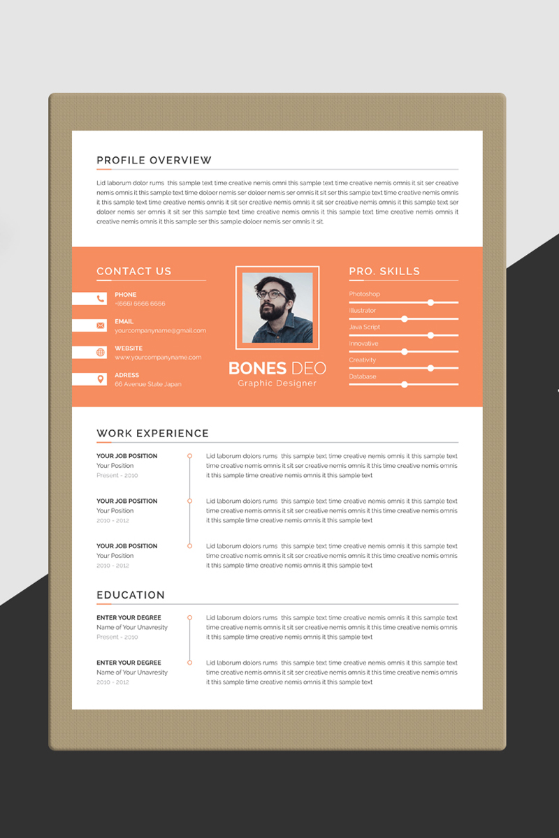 Download Резюме "Bones Deo Resume Template" / Bones Deo Resume Template - Резюме на тему графика resume cv clean creative word infographic modern professional student mac pages manager template bankers doctors job seekers