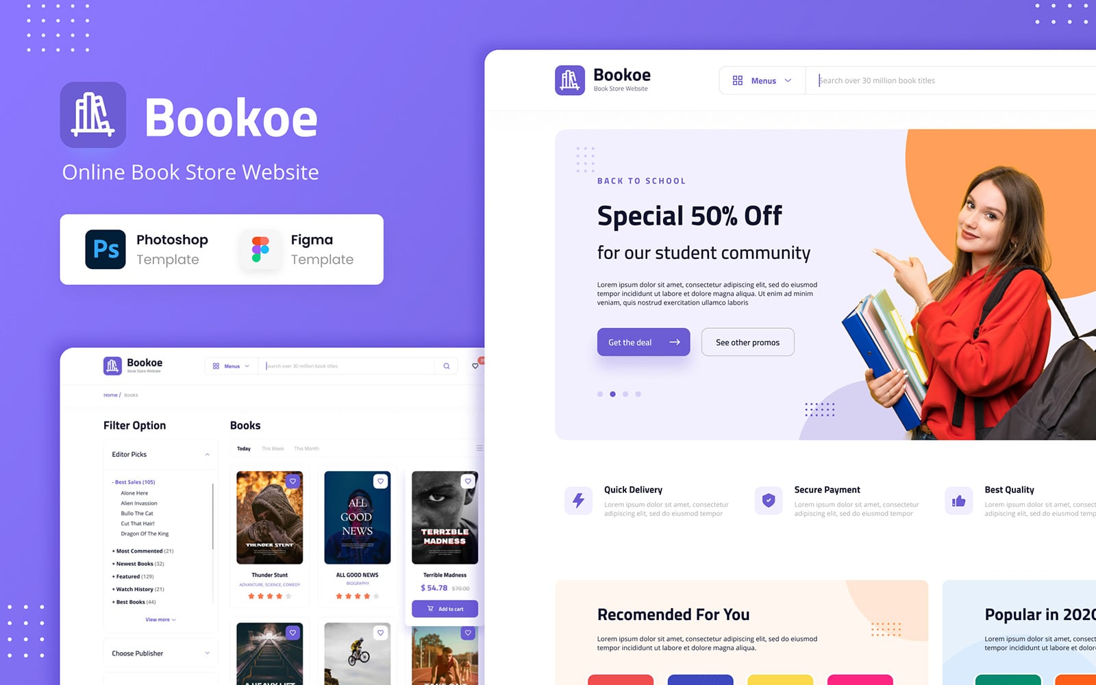 Download UI элементы "Bookoe - Book Store Website UI Design " / Bookoe - Book Store Website UI Design - UI элементы на тему графика figma template,psd template,user interface,website design,book store,online book store,book,shop,ecommerce,ecommerce website,ui design,homepage,product,grid,fullwidth,checkout,transaction,pay
