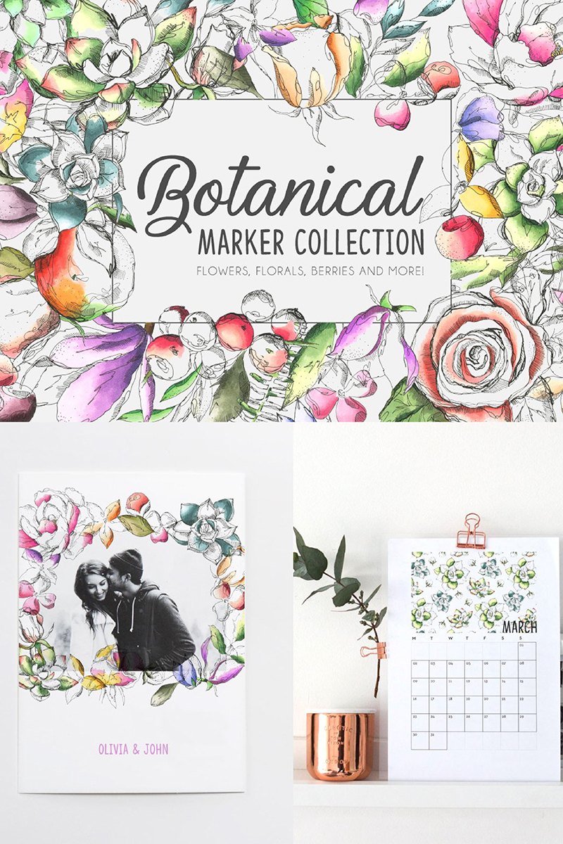 Download Иллюстрация "Botanical Marker Collection - Illustration" / Botanical Marker Collection - Illustration - Иллюстрация на тему графика market flower apple floral botanical botanic garden leaf leaves pattern book cover magazine poster print abstract retro vintage wedding frame