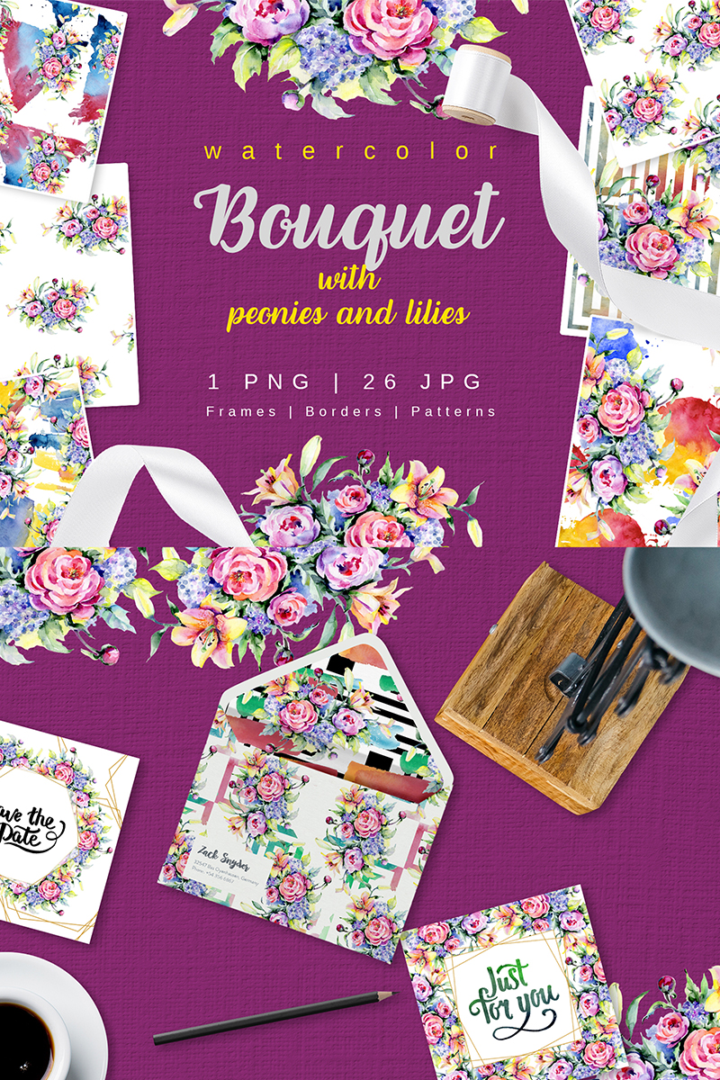 Download Иллюстрация "Bouquet with Peonies and Lilies Watercolor png - Illustration" / Bouquet with Peonies and Lilies Watercolor png - Illustration - Иллюстрация на тему графика bouquet with peonies and lilies watercolor png