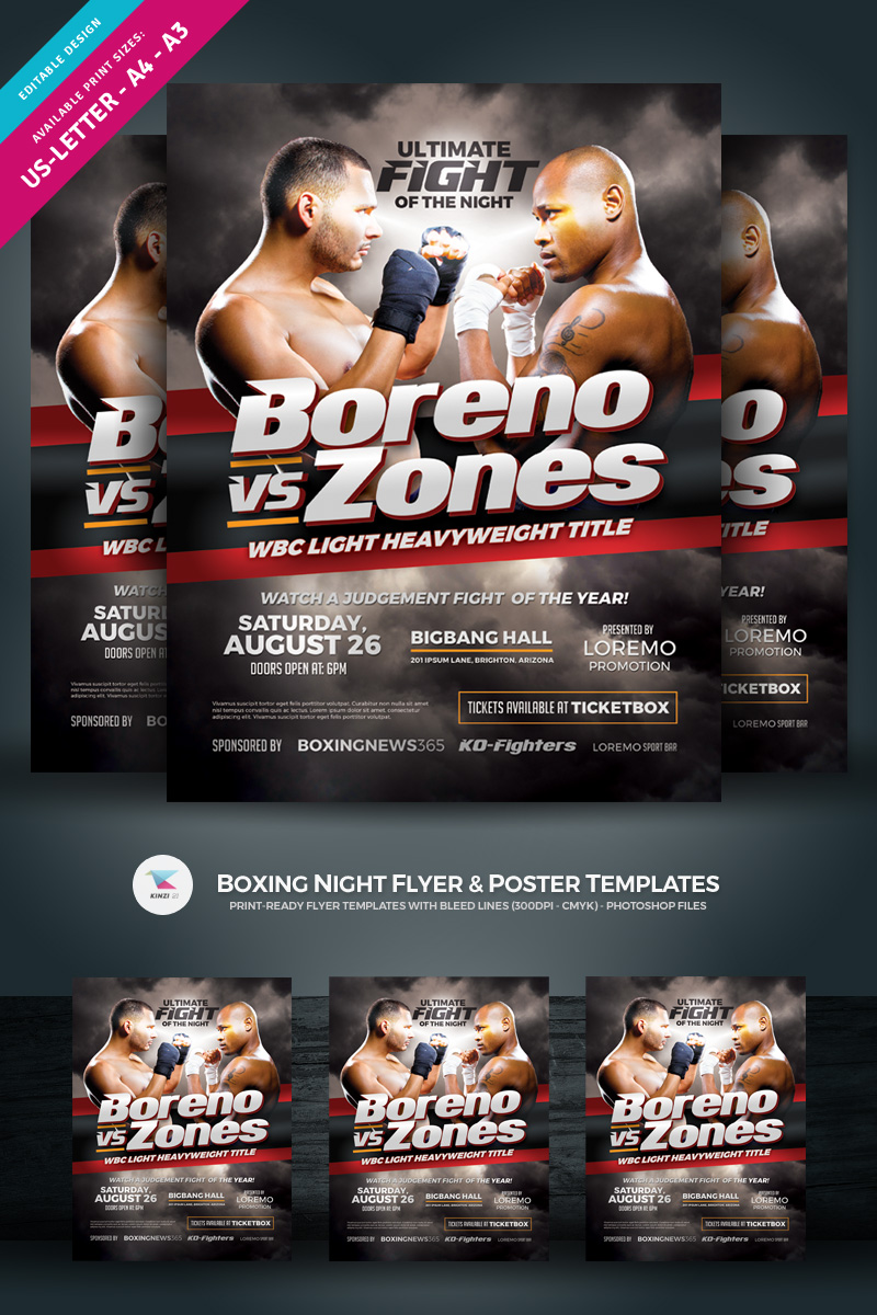 Download Фирменный стиль "Boxing Night Flyer & Poster - Corporate Identity Template" / Boxing Night Flyer & Poster - Corporate Identity Template - Фирменный стиль на тему графика ad boxer boxing club fight fighter flyer kick kick-boxing leaflet magazine martial art mma night pamphlet ufc wrestling poster wwf