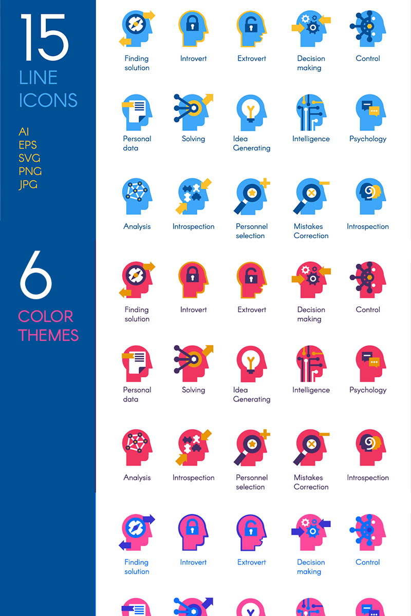 Download Набор иконок "Brain Processes Icon Set" / Brain Processes Icon Set - Набор иконок на тему графика set icon pictogram head mind process cognitive brain mental psychology knowledge skill people human perception logo empathy health education business