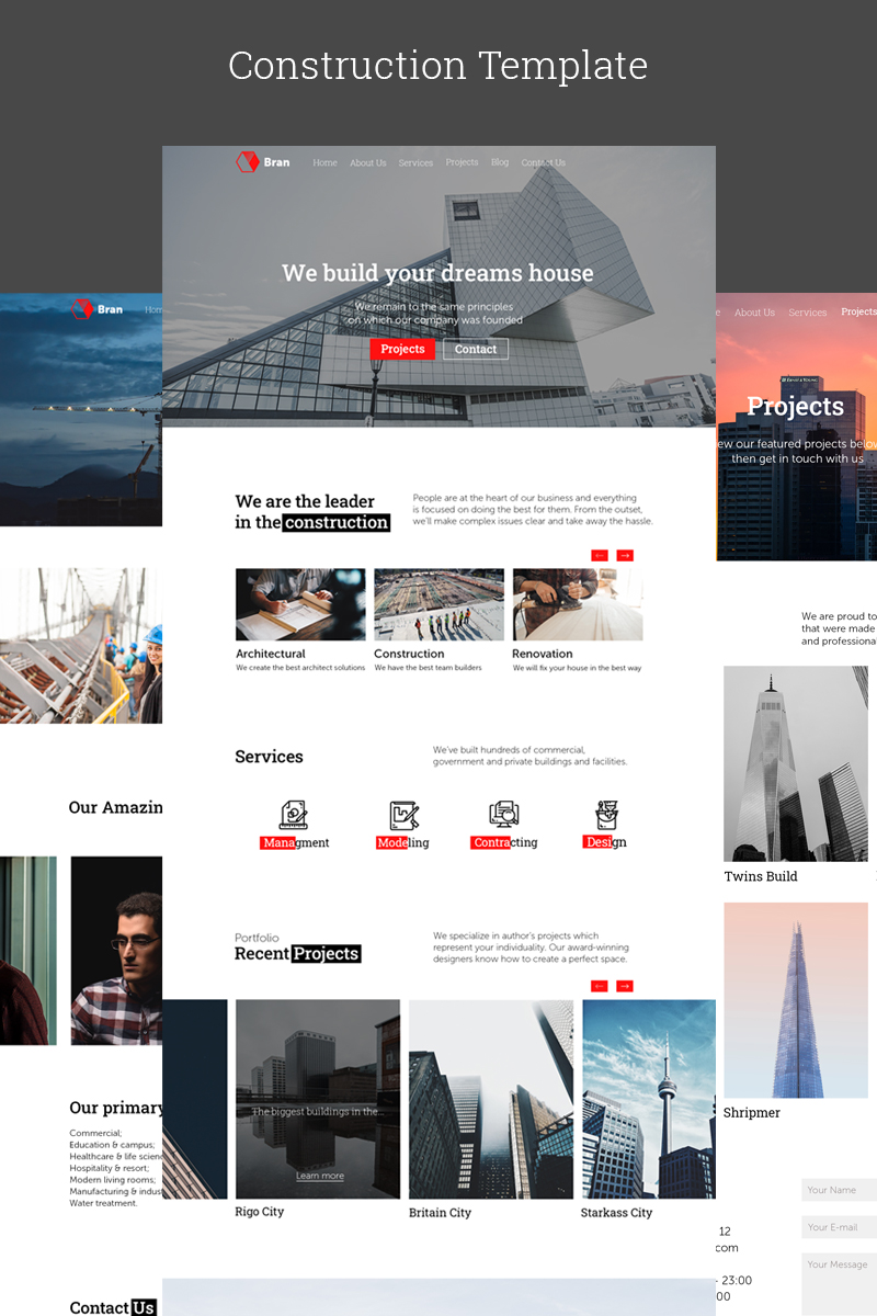 Download PSD шаблон "Bran - Construction Company Responsive Website PSD Template" / Bran - Construction Company Responsive Website PSD Template - Адаптивный PSD шаблон на тему строительные компании construction building house dreamhouse architecture renovation design modeling warehouse innovation commercial engineering industrial room