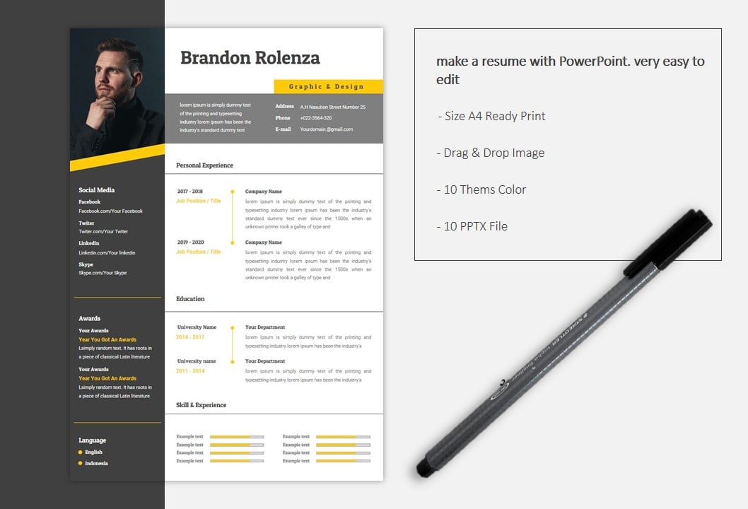 Download Резюме "Brandon Lorenza Resume Template" / Brandon Lorenza Resume Template - Резюме на тему графика a4,clean,cv,design,elegant,resume,infographic,letter,minimalist,modern,portfolio,professional,minimal,pages,template,male,powerpoint