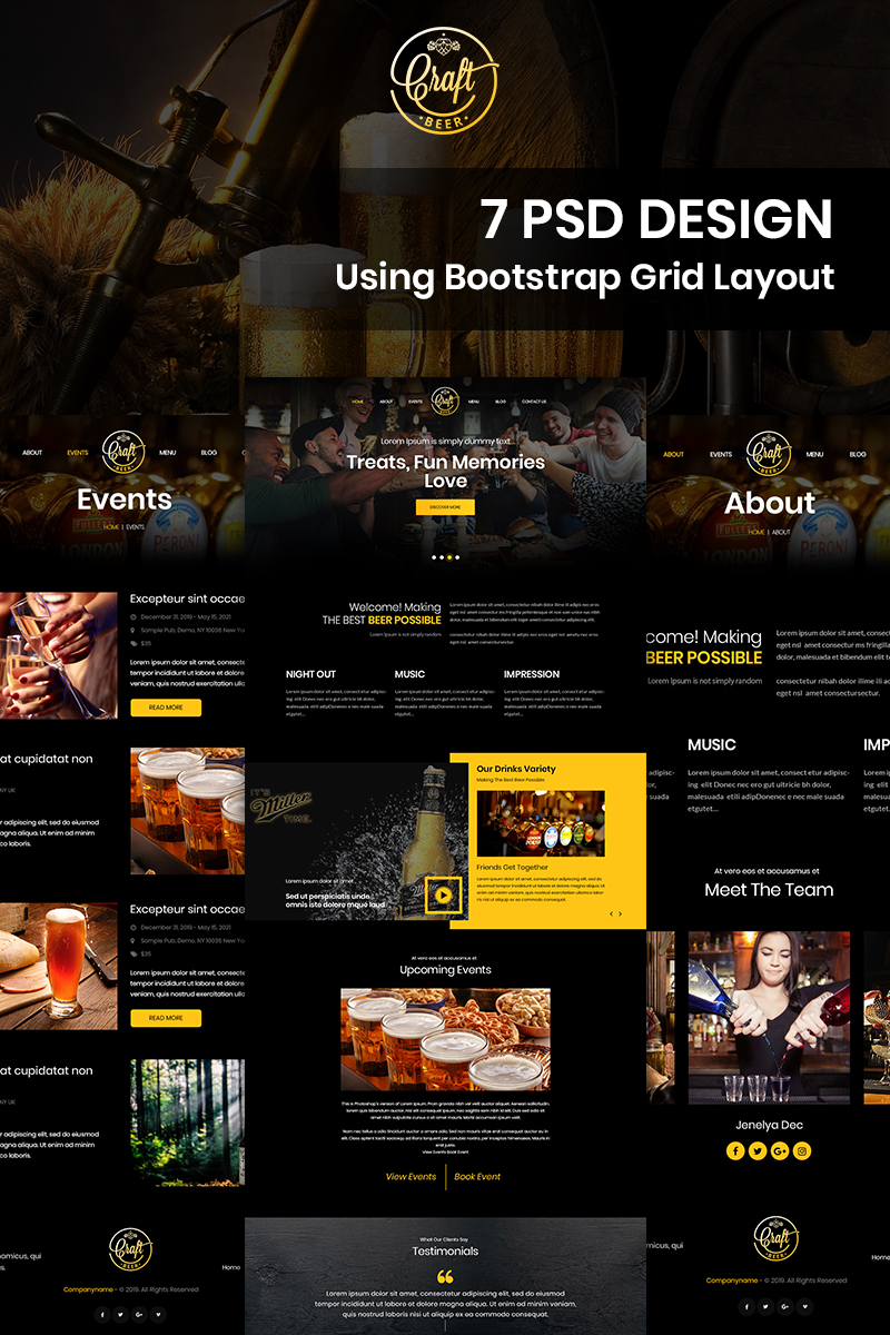 Download PSD шаблон "Bratl Beer - Beer Pub PSD Template" / Bratl Beer - Beer Pub PSD Template - PSD шаблон на тему графика beer pub drinks theme template photoshop psd