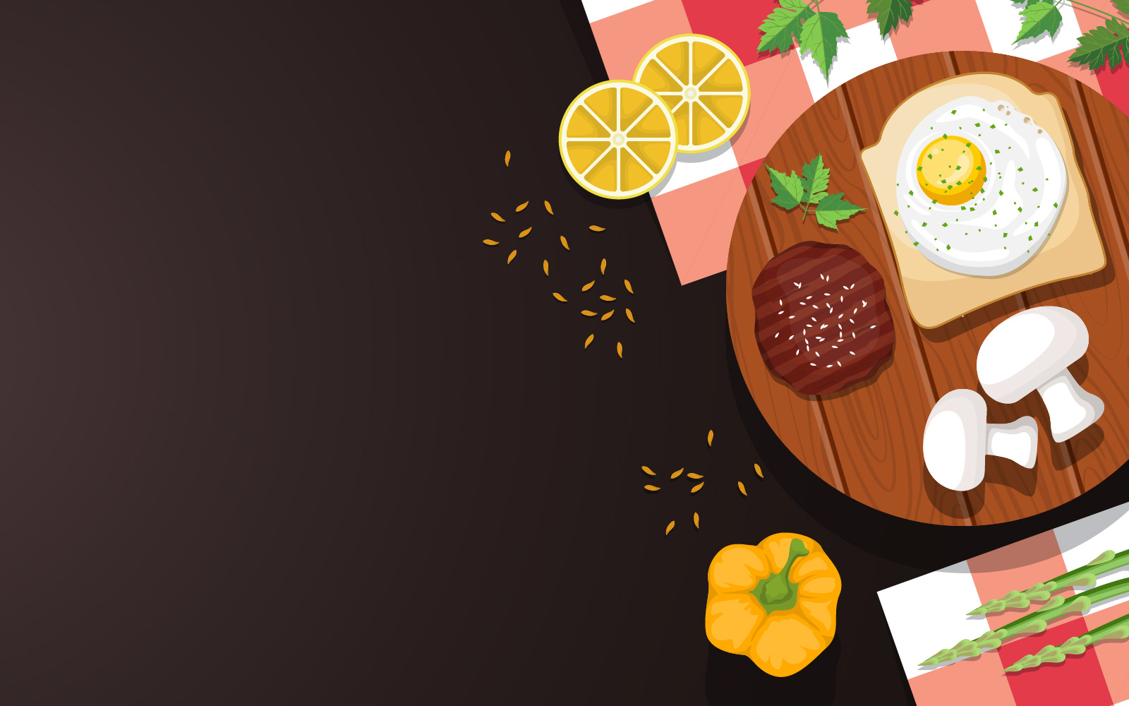 Download Иллюстрация "Breakfast Bread Meat - Illustration" / Breakfast Bread Meat - Illustration - Иллюстрация на тему графика egg,brad,meat,cooking,table,kitchen,backdrop,illustration,vector,lemon,fried,bread,mushroom,paprika,asparagus,cumin,coriander,celery,sesame,fennel