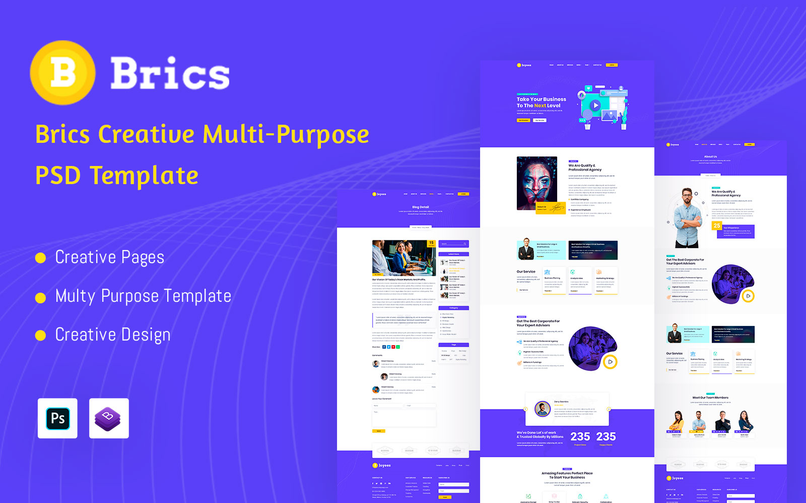 Download PSD шаблон "Brics Creative Multi-Purpose PSD Template" / Brics Creative Multi-Purpose PSD Template - Адаптивный PSD шаблон на тему бизнес и услуги business psd,creative psd,psd templates