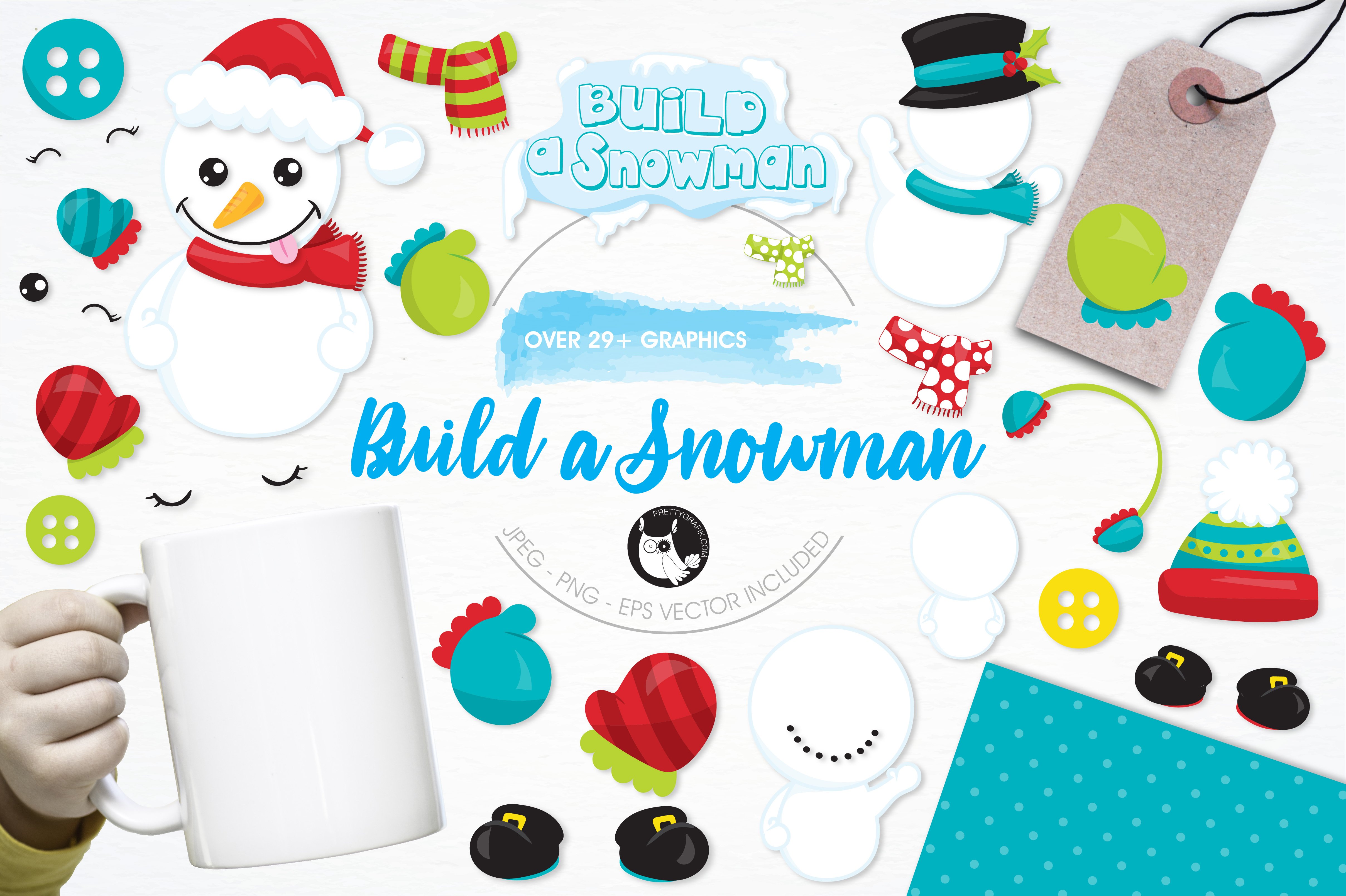 Download Vector "Build a snowman illustration pack - Vector Image" / Build a snowman illustration pack - Vector Image - Vector на тему графика illustration,vector,graphics,clipart,clip art,button,icons,hat,snowman,build,eps,prettygrafik,mitten,mitts,scarves,earmuffs