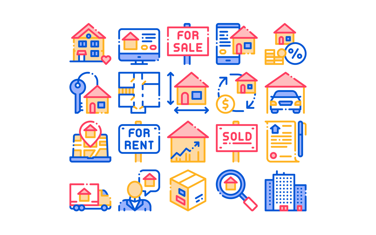 Download Набор иконок "Building House Sale Vector Thin Line Set Icon" / Building House Sale Vector Thin Line Set Icon - Набор иконок на тему city building,house,sale,rent,tablet,smartphone,application,linear,pictograms,garage,skyscraper,truck,cargo