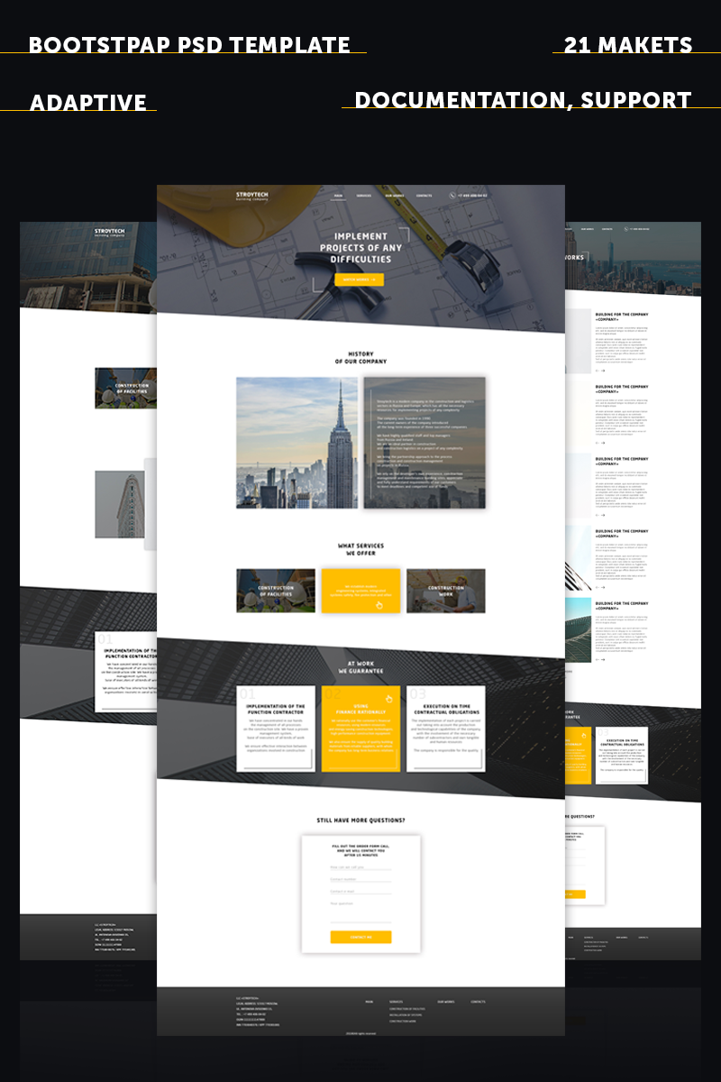 Download PSD шаблон "Building Responsive PSD Template" / Building Responsive PSD Template - PSD шаблон на тему промышленность business site building industrial industrialtemplate businesscardsite multipage multipagesite psd cool flat yellow psdtemplate