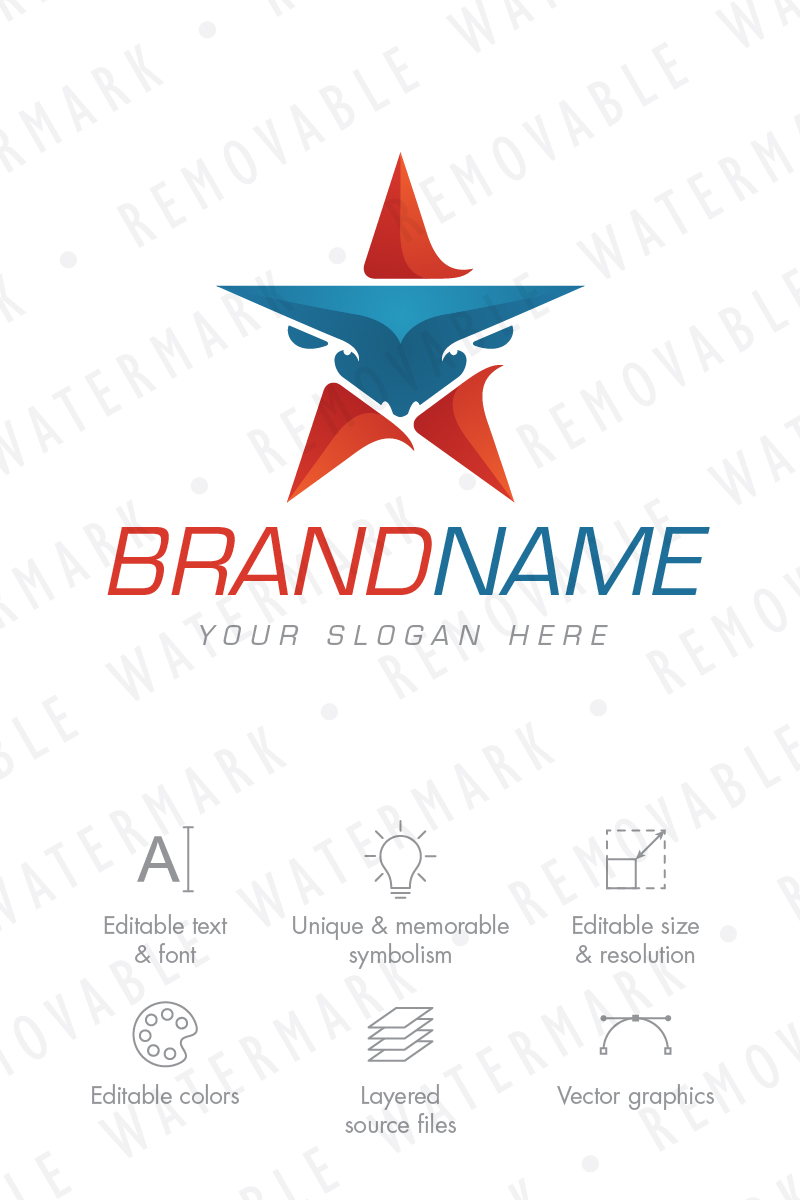 Download Шаблон логотипа "Bull Star Logo Template" / Bull Star Logo Template - Шаблон логотипа на тему графика animal letter a bull strong sharp horn star abstract cow cattle bison logo design template leather trophy fashion investing farm