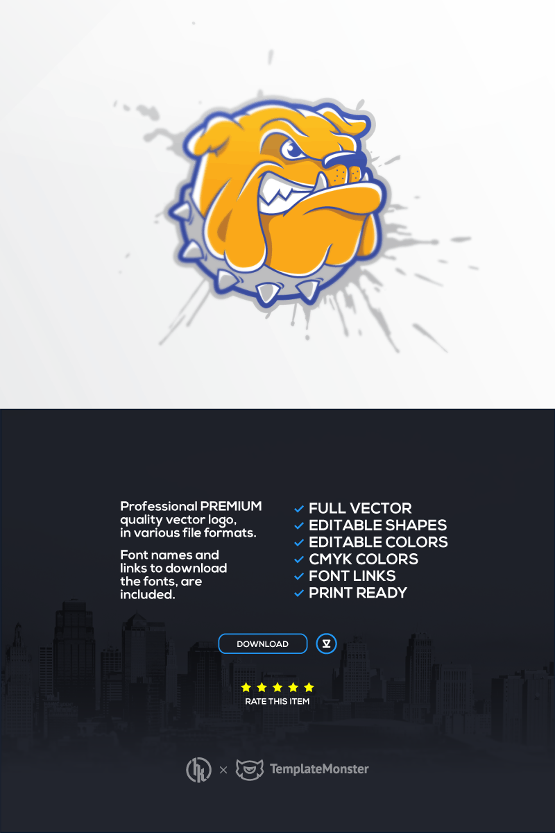 Download Шаблон логотипа "Bulldogs Logo Template" / Bulldogs Logo Template - Шаблон логотипа на тему графика bulldog,dog,sport,baseball,basketball,hockey,football,soccer,athletic,editable,vector,font,support,template,sports,logo