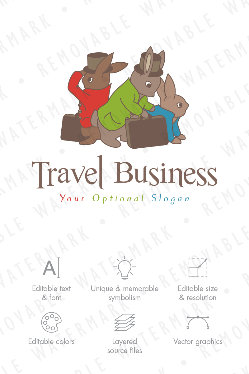 Download Шаблон логотипа "Bunny Travelers Logo Template" / Bunny Travelers Logo Template - Шаблон логотипа на тему графика trip fun adventure suitcase travel character family cartoon playful hat bunny rabbit hare mascot logo design template journey tourism illustration