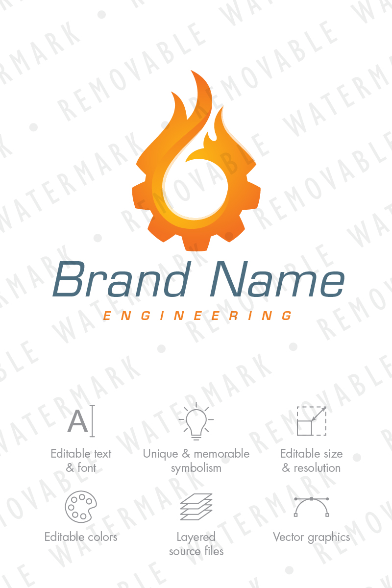 Download Шаблон логотипа "Burning Cogwheel Logo Template" / Burning Cogwheel Logo Template - Шаблон логотипа на тему графика engineering fire flame gear cog burning energy fuel heat power wheel technology oil gas logo design template industry machine hot