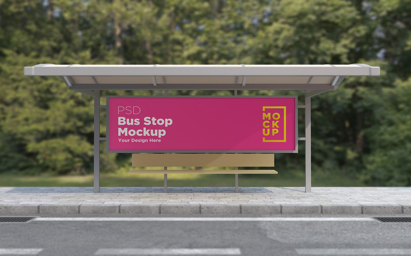 Download Мокап для продукта "Bus Stop Billboard product mockup" / Bus Stop Billboard product mockup - Мокап для продукта на тему графика communication,mock up,signboard,transport,road,roadside,frame,station,billboard,street,city,board,poster,blank,mockup,commercial,bus,stop,advertisement marketing,advertisement