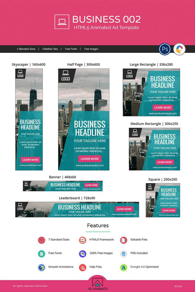 Download Animated Banner "Business 002 - HTML5 Ad Animated Banner" / Business 002 - HTML5 Ad Animated Banner - Animated Banner на тему графика business corporate clean modern attractive simple design banner html5 online google adroll doubleclick ad template multipurpose multi-use