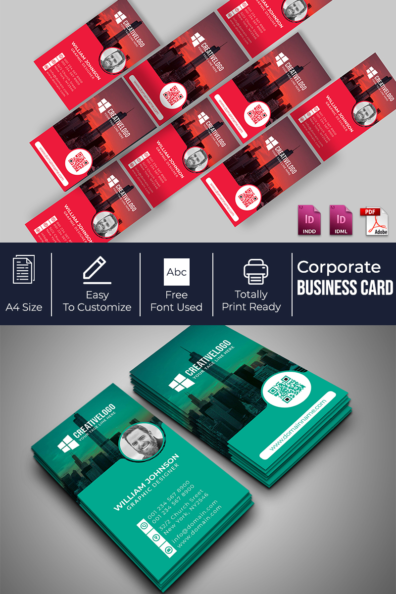 Download Фирменный стиль "Business Card - Corporate Identity Template" / Business Card - Corporate Identity Template - Фирменный стиль на тему графика modern personal card black blue business design clean corporate creative elegant green line minimalist template indesign print simple stylish trendy
