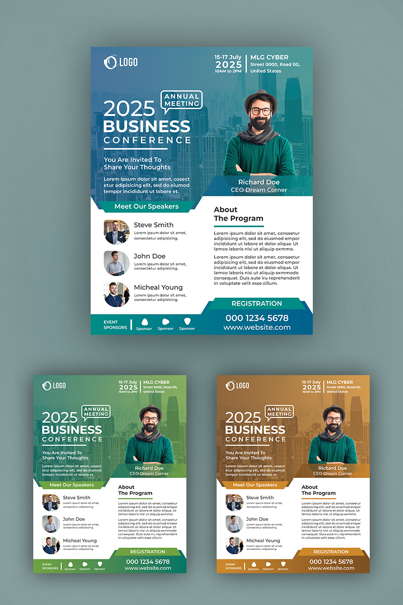 Download Фирменный стиль "Business Conference Flyer - Corporate Identity Template" / Business Conference Flyer - Corporate Identity Template - Фирменный стиль на тему графика a4,advertisement,advertising,agency,business,businessflyer,corporate,corporateflyer,creative,design,flyer,marketing,modern,professional,promotion,psd,conference,event,annual