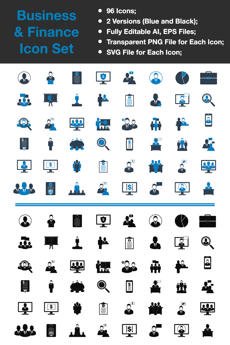Download Набор иконок "Business & Finance - Premium Vector Icon Set" / Business & Finance - Premium Vector Icon Set - Набор иконок на тему графика business icon set finance corporate man team online e-commerce graph job document statement insurance female search find review feedback file