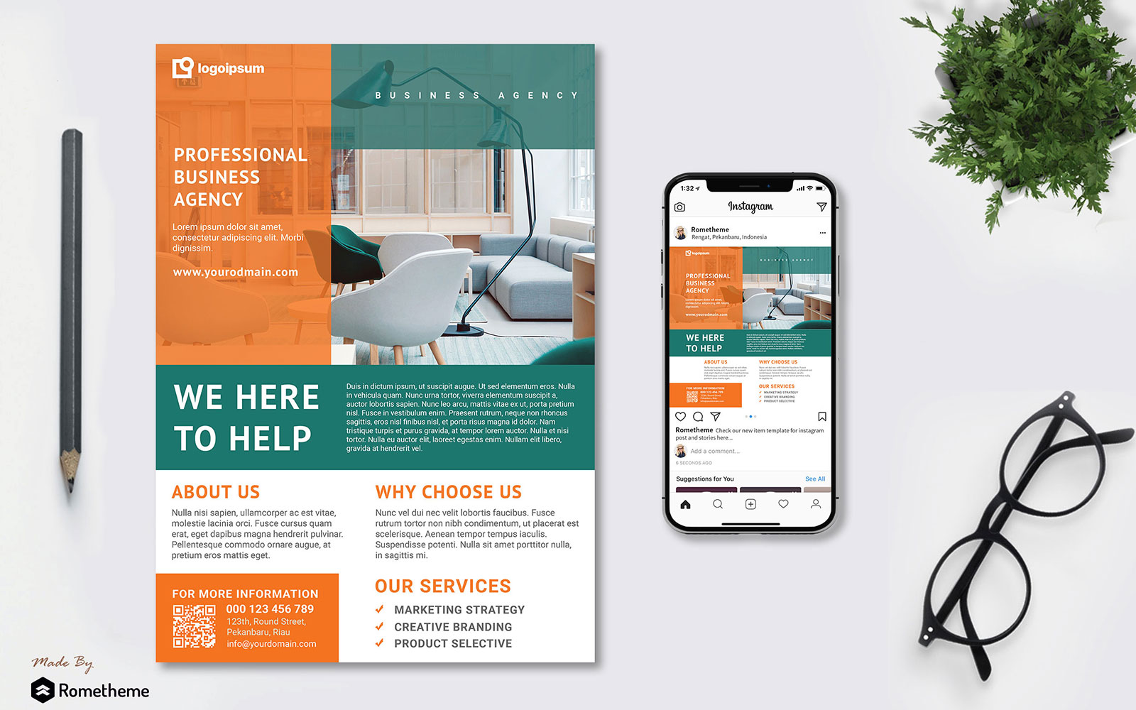 Download Фирменный стиль "Business vol.04 - Flyer TY - Corporate Identity Template" / Business vol.04 - Flyer TY - Corporate Identity Template - Фирменный стиль на тему графика business,corporate,company,personal,creative,orange,green,flyer,brochure,banner,instagram,post,promotion,services,modern