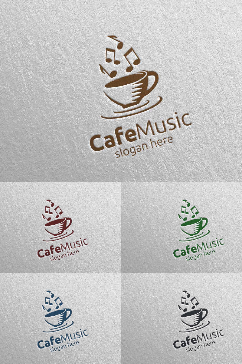 Download Шаблон логотипа "Cafe Music with Note and Cafe Concept 63 Logo Template" / Cafe Music with Note and Cafe Concept 63 Logo Template - Шаблон логотипа на тему графика music logo karaoke melody movie multimedia record voice singer note sound song play video volume audio vector compose cafe disco