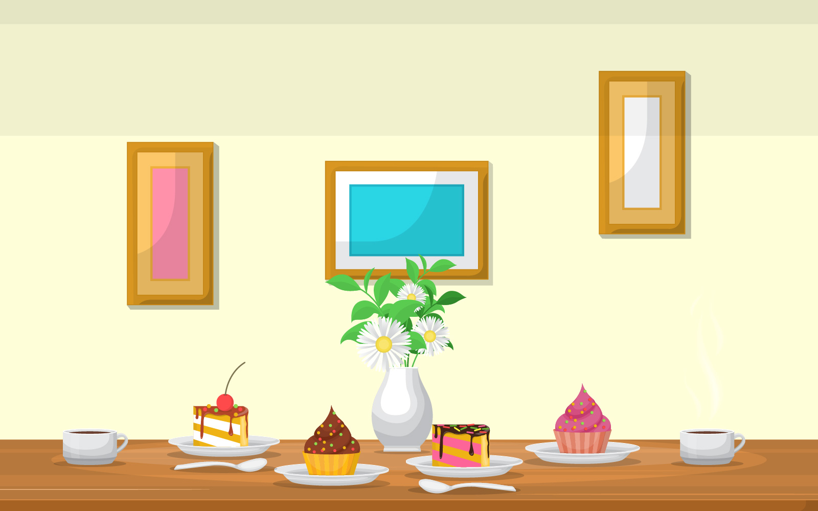 Download Иллюстрация "Cake Flower Cup - Illustration" / Cake Flower Cup - Illustration - Иллюстрация на тему графика cake,flower,cup,coffee,table,cafe,restaurant,illustration,vector,cupcakes,frame,vase,sweet,design,flat,style,background,apartment,wall,comfortable