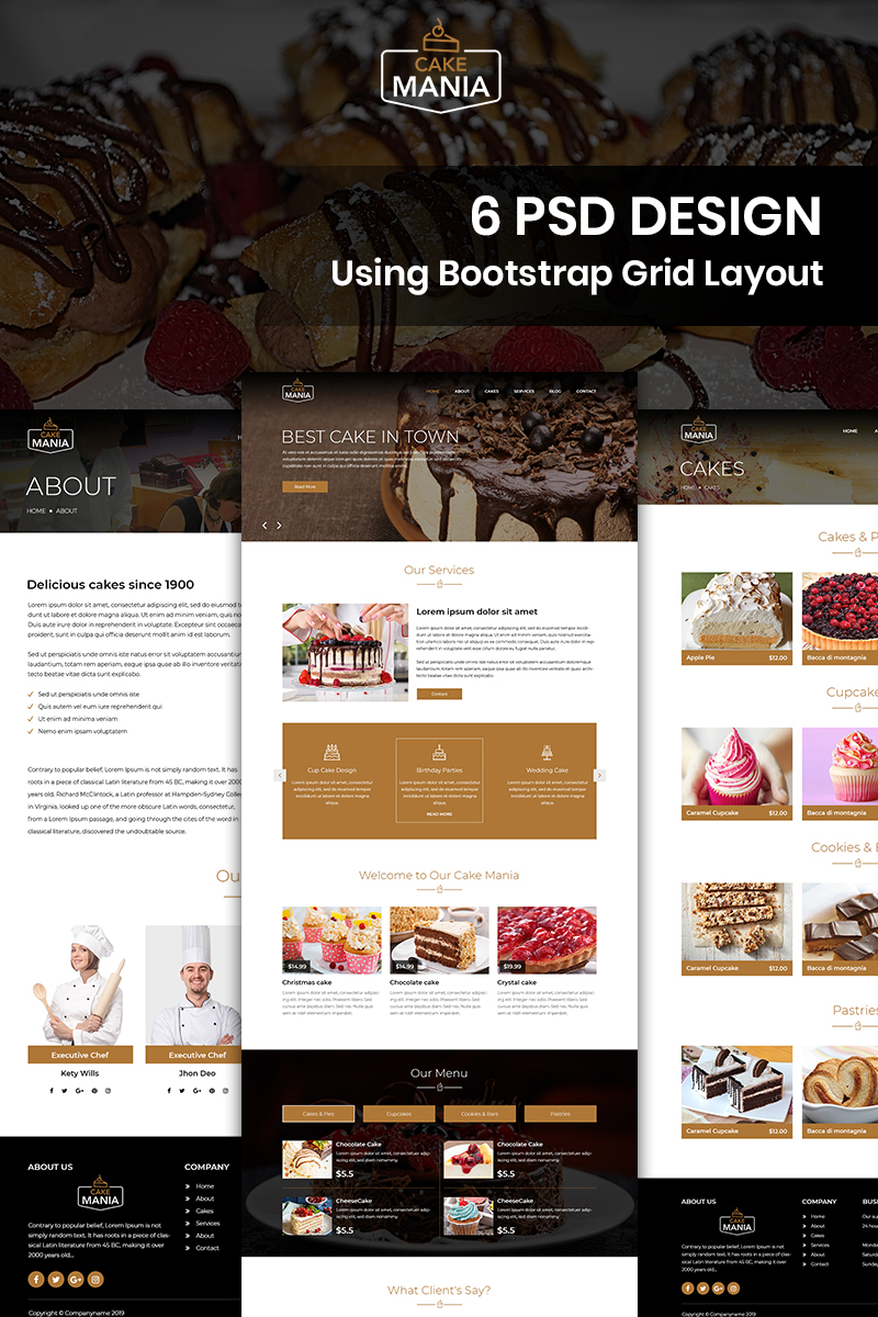 Download PSD шаблон "Cake Mania - Cake Shop PSD Template" / Cake Mania - Cake Shop PSD Template - PSD шаблон на тему графика cake pastry shop template theme psd photoshop