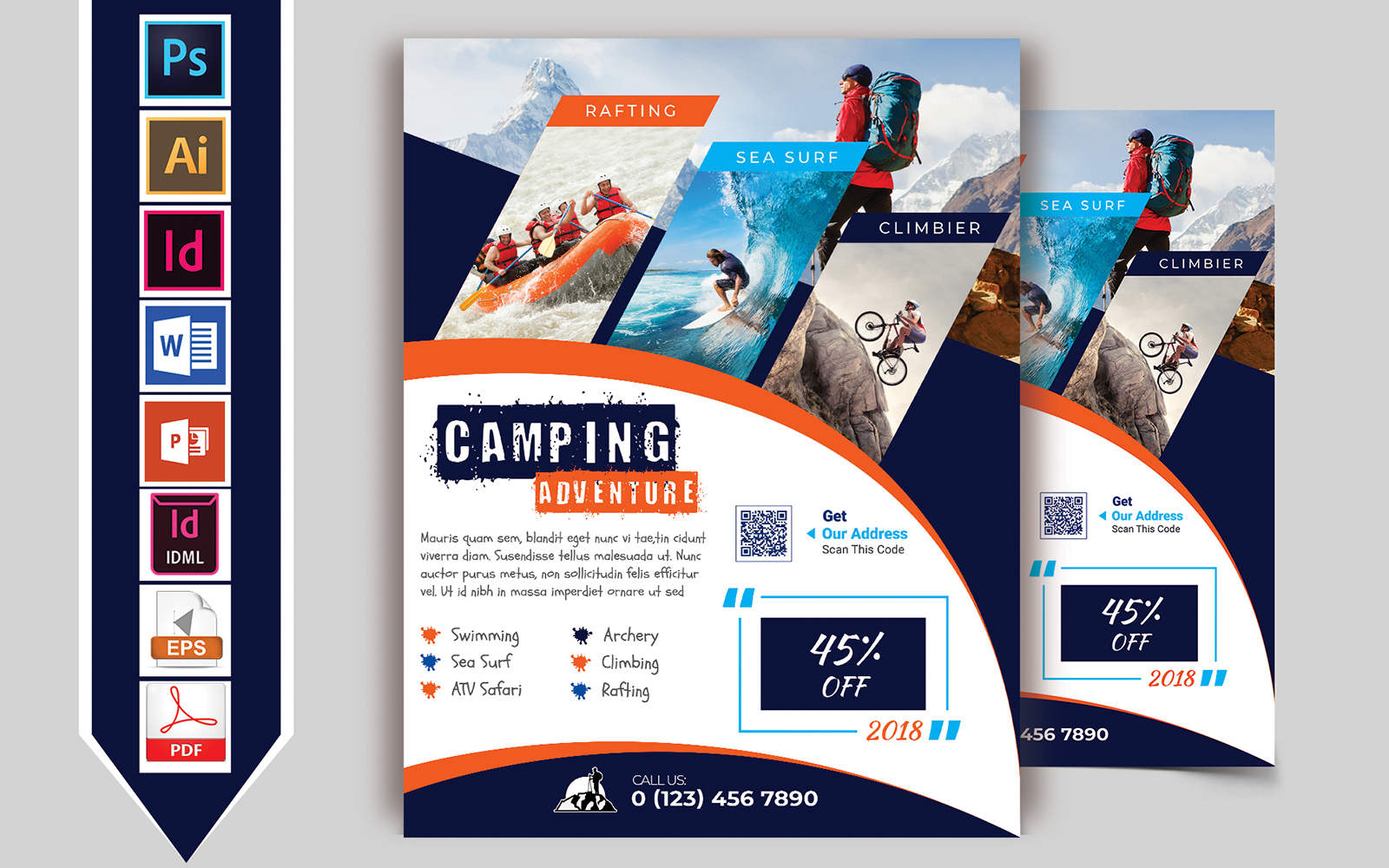 Download Фирменный стиль "Camping Adventure Flyer Vol-03 - Corporate Identity Template" / Camping Adventure Flyer Vol-03 - Corporate Identity Template - Фирменный стиль camp,camping,adventure,tour,travel,hill,surfing,jumping,flyer,poster,mountain,forest,sea,beach