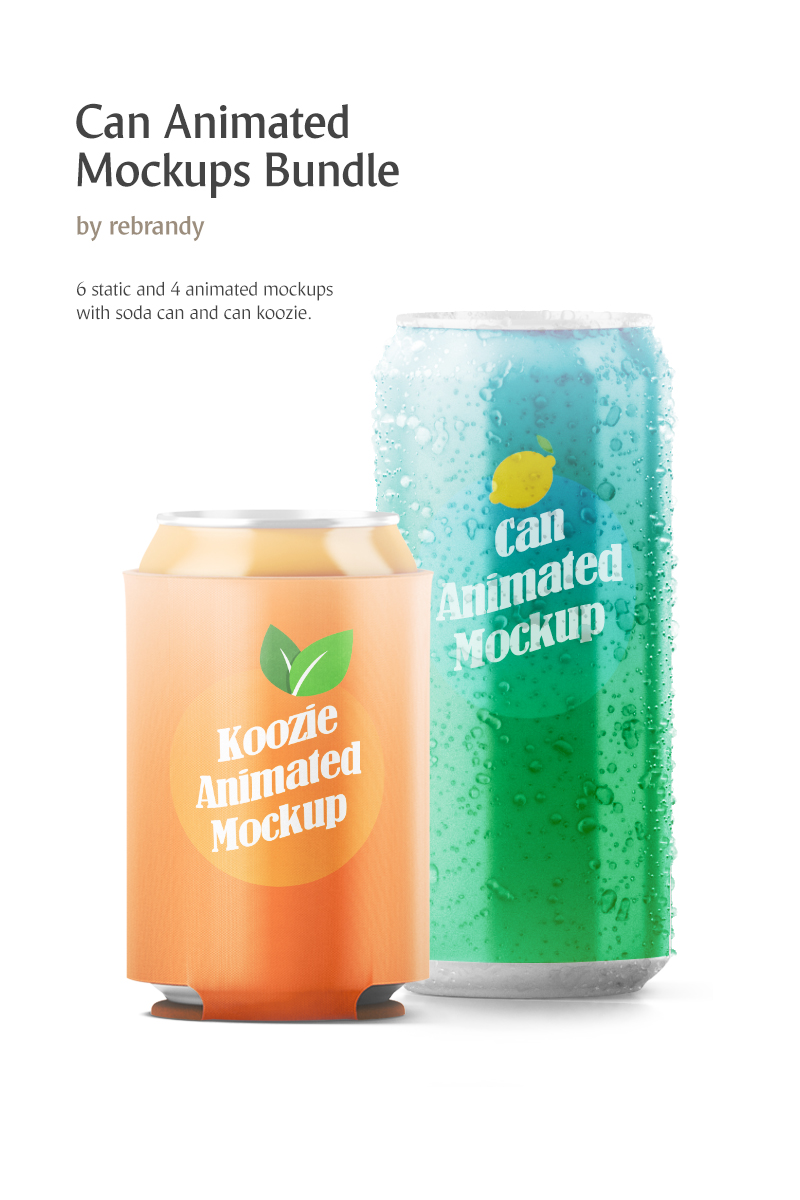 Download БАндл анимированных мокапов / Can Animated Mockups product mockup - Мокап для продукта на тему графика aerated alcohol soda alluminium bar beer beverage drink can cola cocktail container animated psd download mockup cooler koozie carbonated fizzy
