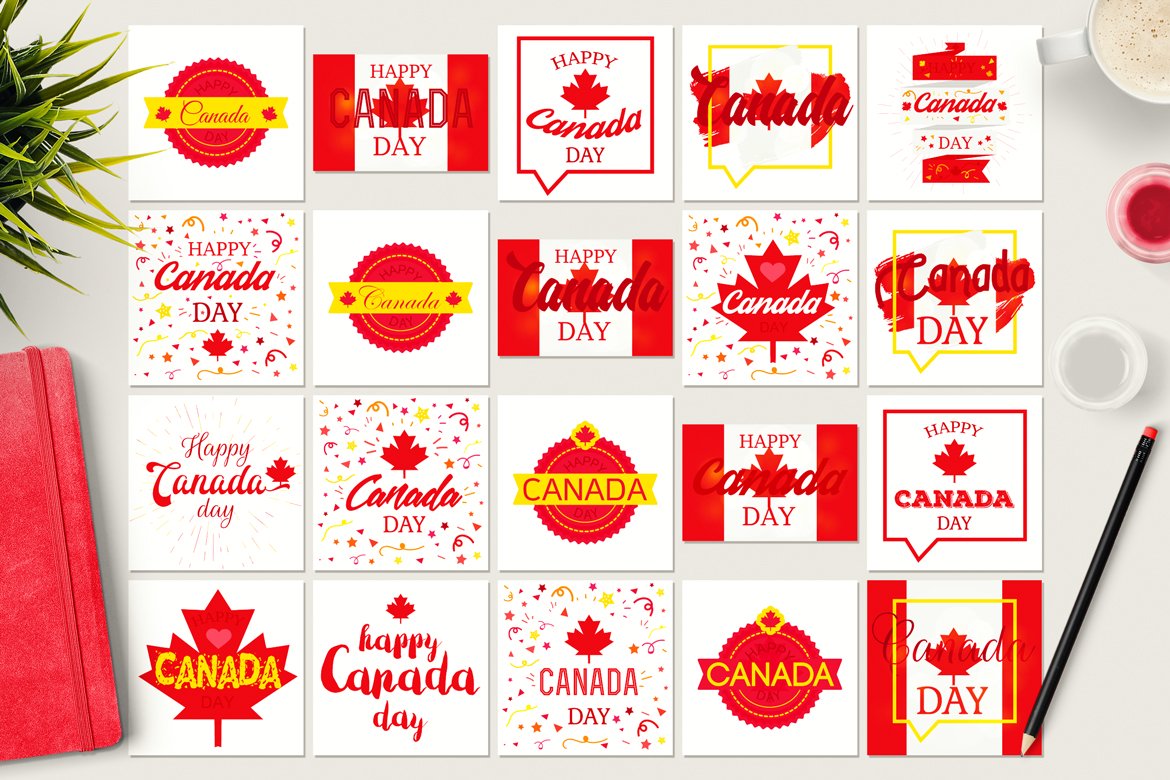 Download Фирменный стиль "Canada Day - Corporate Identity Template" / Canada Day - Corporate Identity Template - Фирменный стиль на тему графика calligraphy,card,typography,vintage,illustration,design,sign,greeting,country,vector,text,happy,holiday,event,decoration,history,background,red,vacation,icon,banner,leaf,flag,celebration,elem