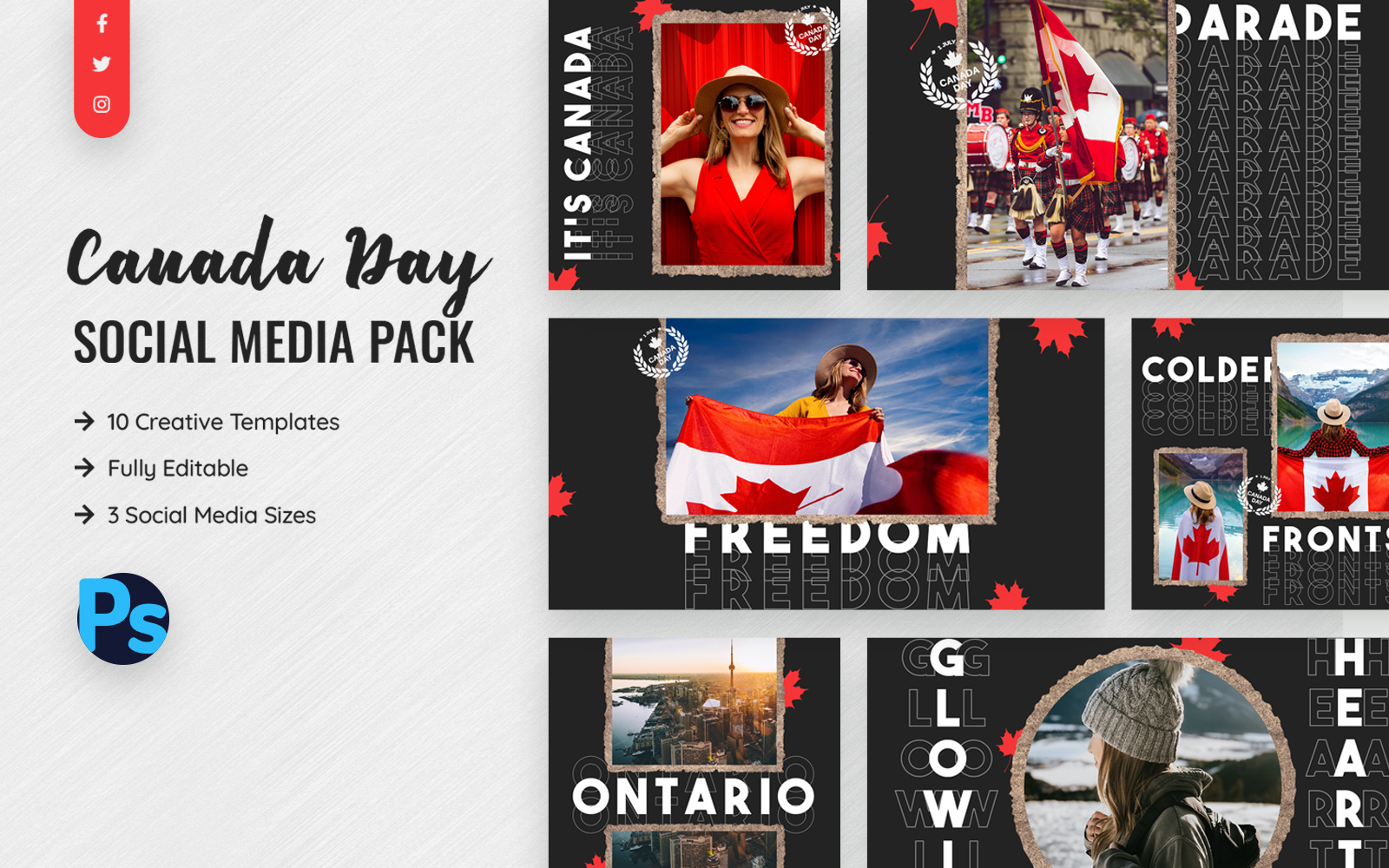 Download Шаблон для соцсетей "Canada Day Social Media Template" / Canada Day Social Media Template - Шаблон для соцсетей на тему графика canada,day,social,media,template,templates,creative,modern,facebook,instagram,twitter,post,national,holiday,federal