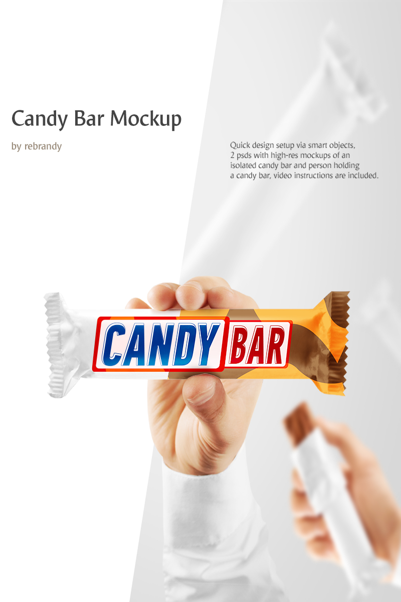 Download Мокап для продукта "Candy Bar - product mockup" / Candy Bar - product mockup - Мокап для продукта на тему графика psd download template mockup candy bar chocolate package sweet eat candybar biscuit sugar cantainer food product foil wrap snack confection
