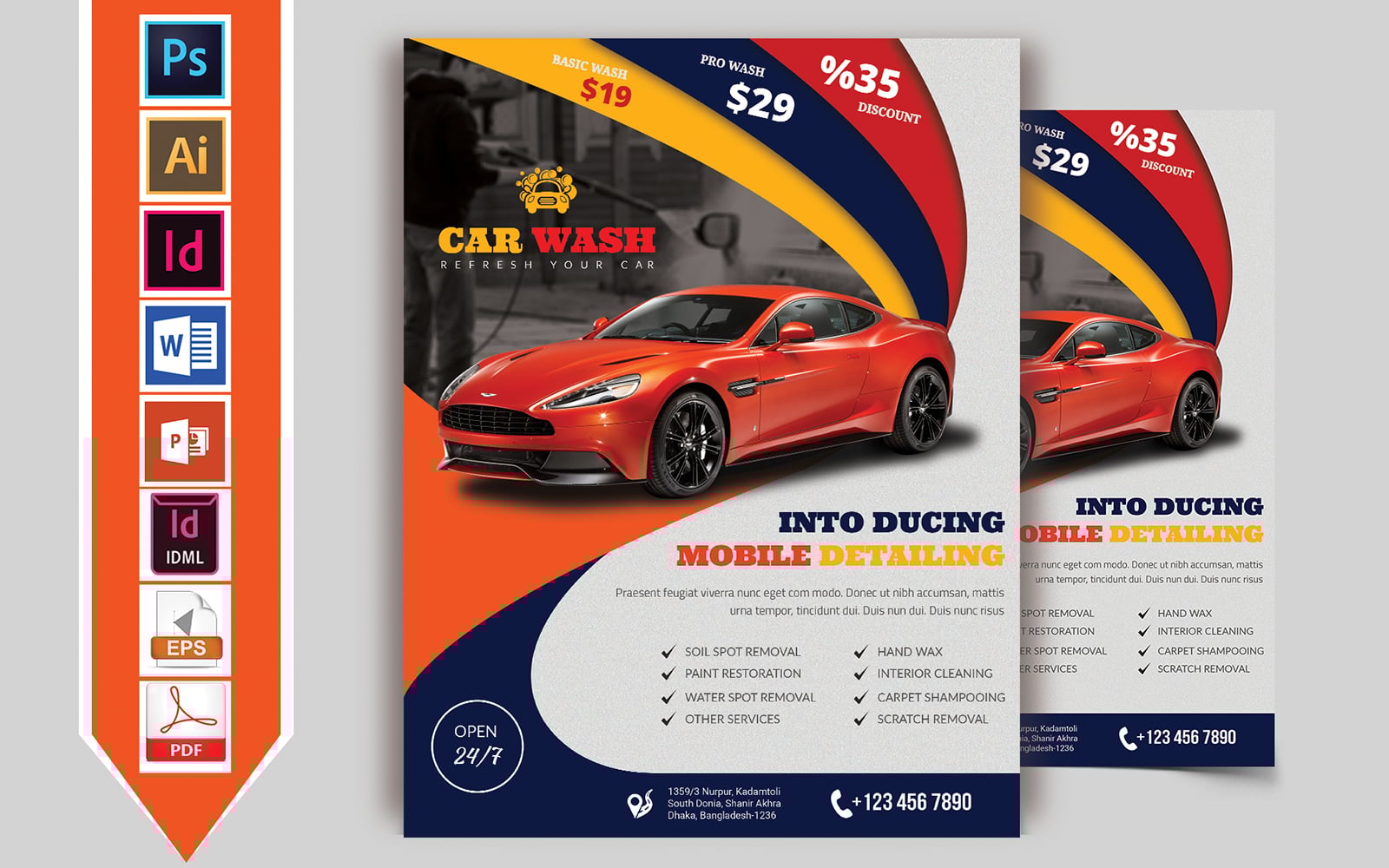 Download Фирменный стиль "Car Wash Flyer Vol-02 - Corporate Identity Template" / Car Wash Flyer Vol-02 - Corporate Identity Template - Фирменный стиль на тему графика flyer,psd,ai,indd,idml,word,powerpoint,car,wash,carwashing,bus,truck,brochure,washed,download,pdf,automobile