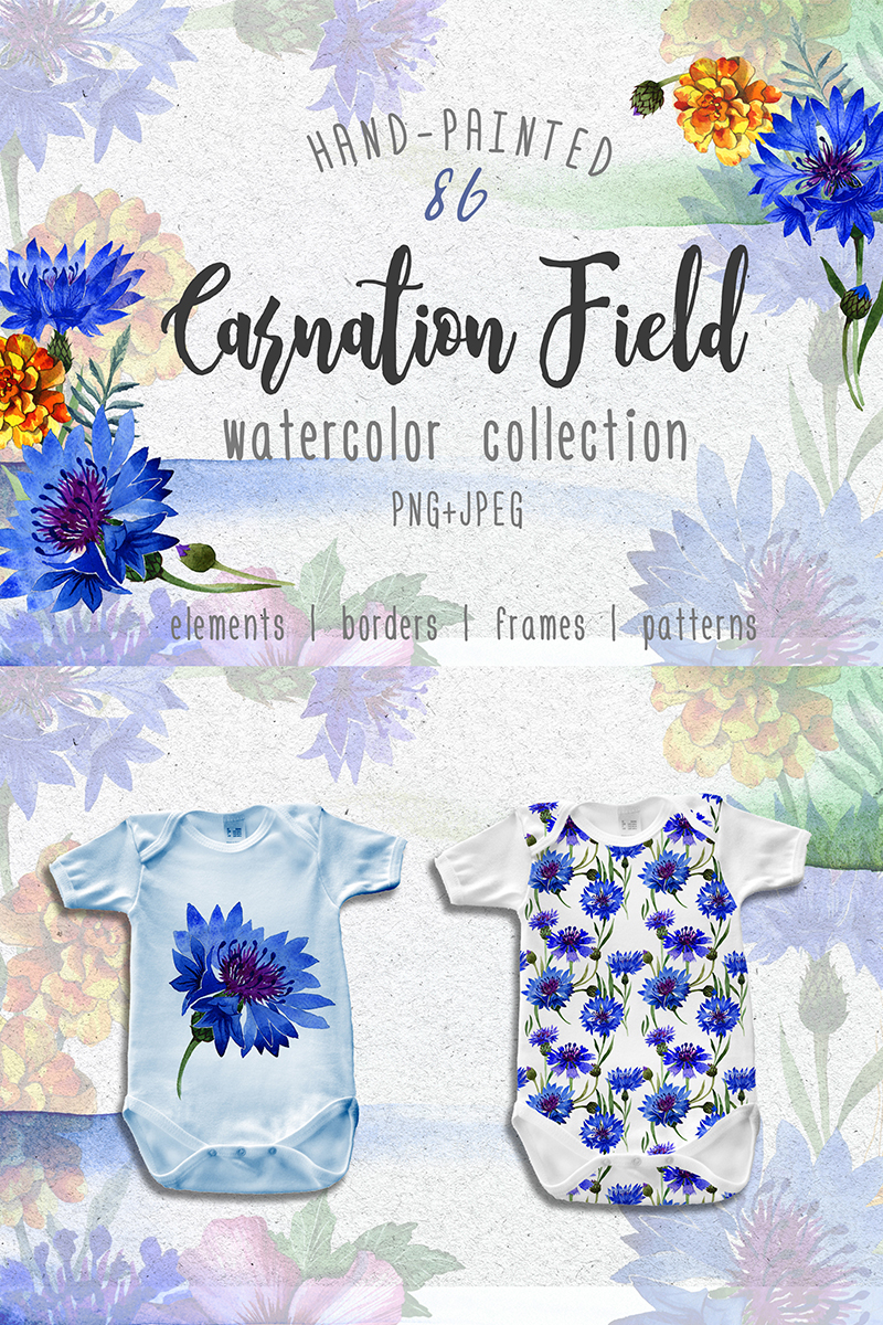 Download Иллюстрация "Carnation field PNG watercolor set - Illustration" / Carnation field PNG watercolor set - Illustration - Иллюстрация на тему графика watercolor illustration carnation drawing background colorful drawn paint blue plant wildflower seasonal foliage flower sprout stem textile botanical garden floral