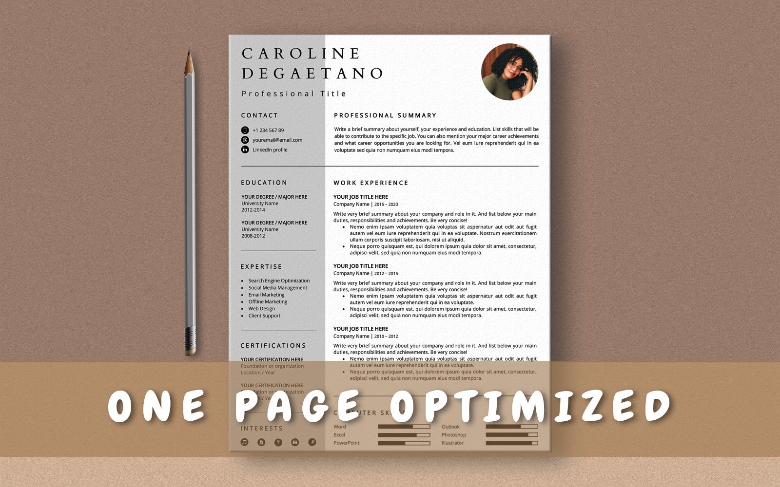 Download Резюме "Caroline Degaetano One Page Resume Template" / Caroline Degaetano One Page Resume Template - Резюме на тему графика one page,resume template,1 page,cv template,single page,curriculum vitae,word,professional,photo,picture,modern,minimal,minimalist,clean,classic,simple,creative,european,project manager,archi