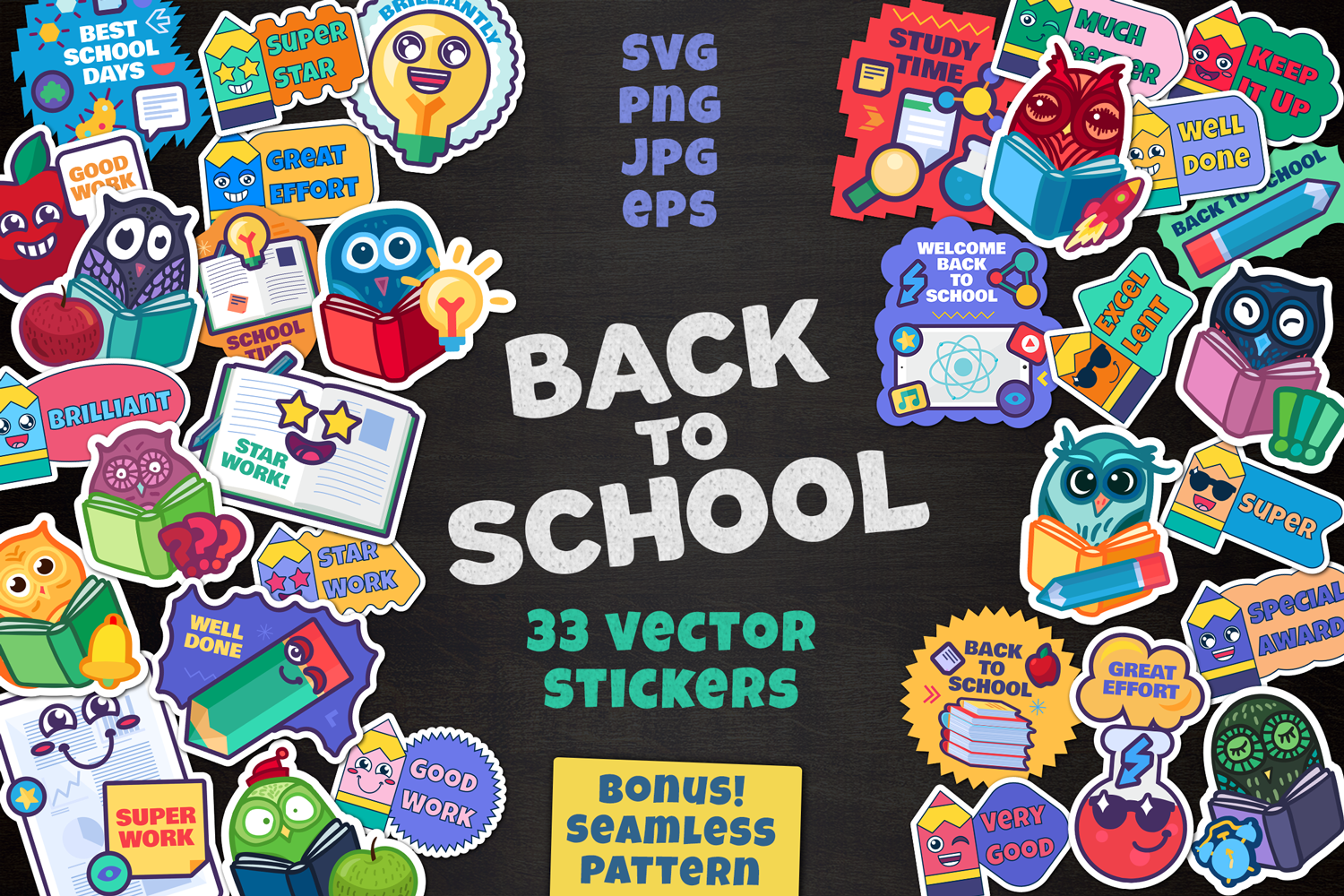 Download Иллюстрация "Cartoon School Stickers Set - Illustration" / Cartoon School Stickers Set - Illustration - Иллюстрация на тему графика owl,school,vector,bird,notebook,cartoon,character,animal,book,teacher,set,wise,smart,element,study,mathematics,supplies,kids,background,reading
