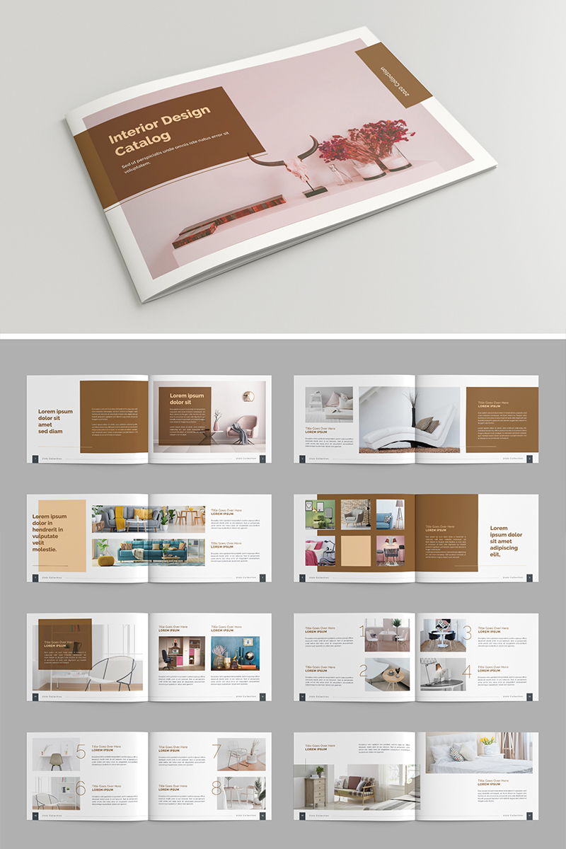 Download Фирменный стиль "Catalog Layout with Brown Accents, 24 Pages - Corporate Identity Template" / Catalog Layout with Brown Accents, 24 Pages - Corporate Identity Template - Фирменный стиль на тему графика template,a5,album,booklet,brochure,catalog,clean,cmyk,company,corporate,creative,deco,decoration,golden,elegant,indesign,interior,landscape,minimal,minimalist