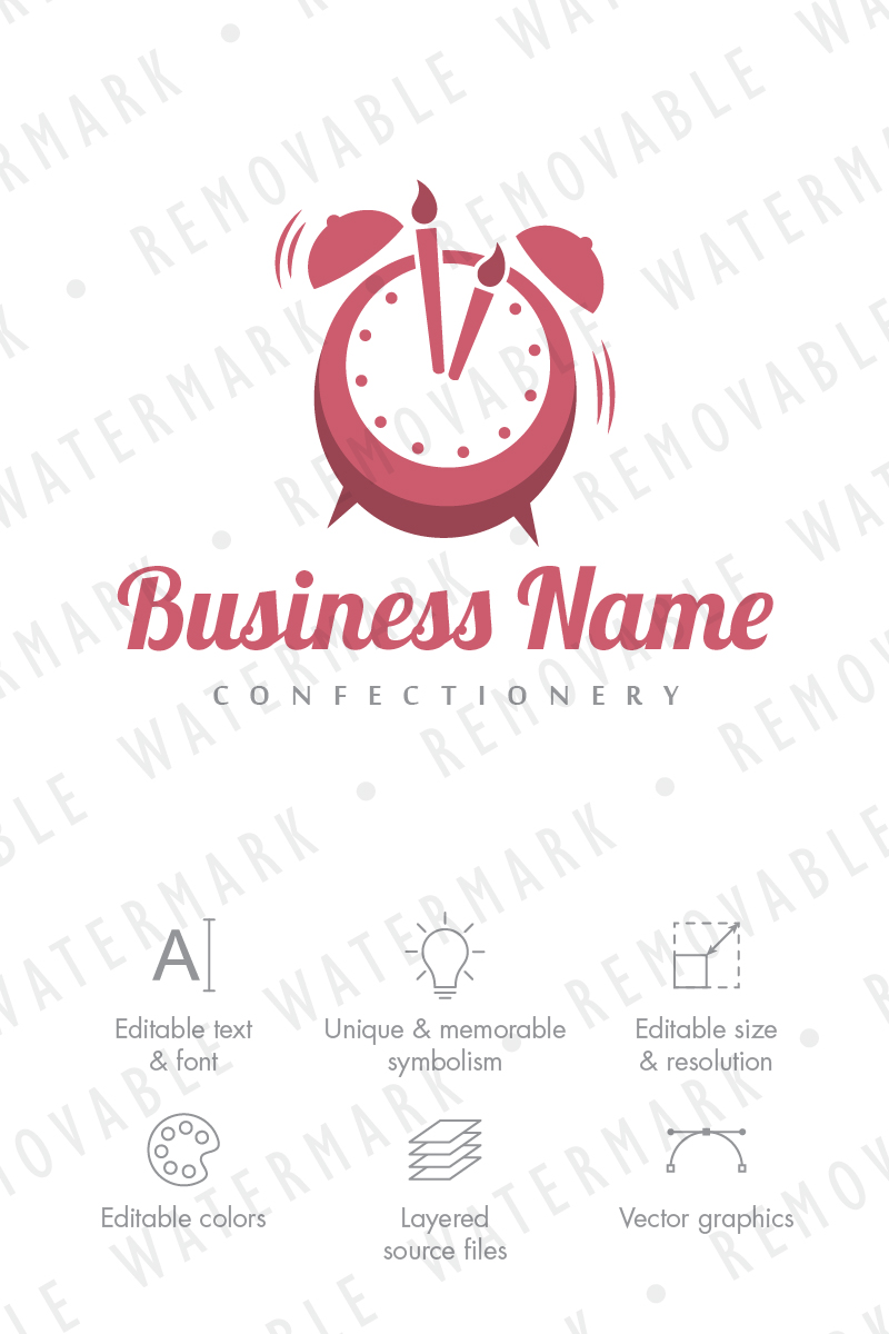Download Шаблон логотипа "Celebration Alarm Clock Logo Template" / Celebration Alarm Clock Logo Template - Шаблон логотипа на тему графика alarm sweet birthday gift clock time wish date event celebration confectionery bakery logo design template food eat wedding cake cooking