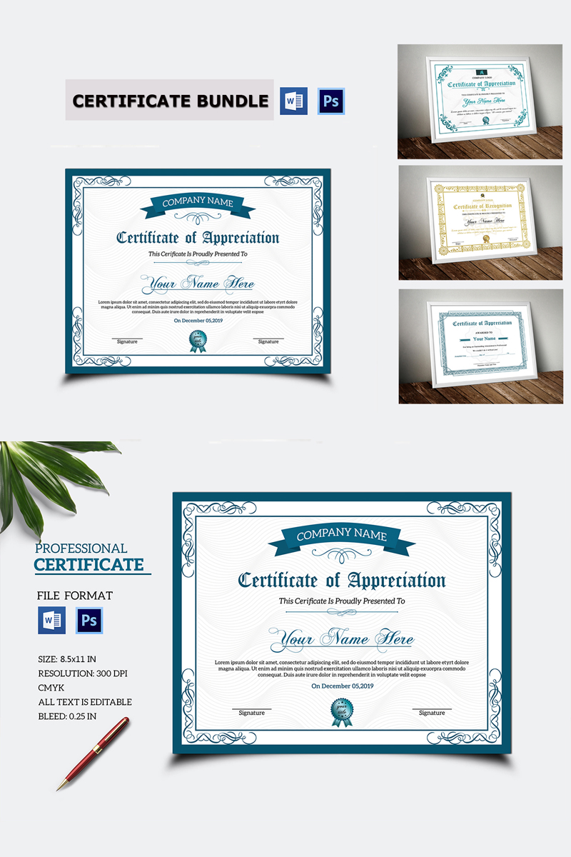 Download Шаблон сертификата "Certificate Bundle Certificate Template" / Certificate Bundle Certificate Template - Шаблон сертификата на тему графика cetificate appreciation recognition achievement award print template multipurpose academic graduate photoshop clean minimal diplopa