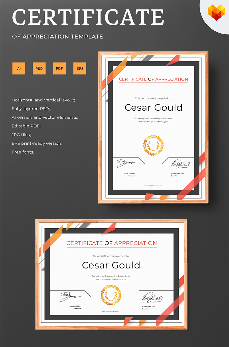 Download Шаблон сертификата "Cesar Gould - Appreciation Certificate Template" / Cesar Gould - Appreciation Certificate Template - Шаблон сертификата на тему графика membership attemdance accredited certification recognition printed award graphic psd identity corporate customizable a4 editable diploma standard formal certificate appreciation graduation