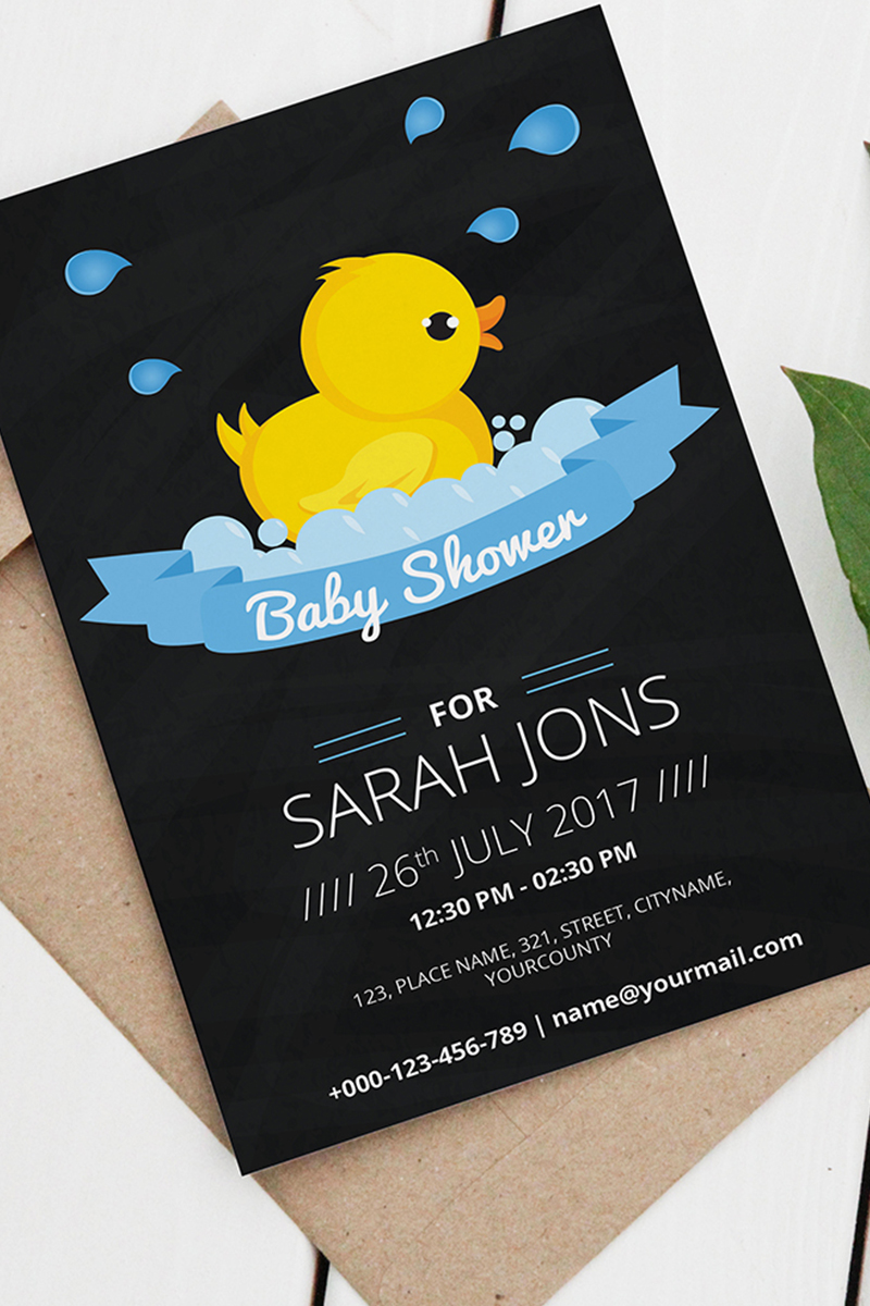 Download Фирменный стиль "Chalkboard Rubber Duck Birthday Invitation - Corporate Identity Template" / Chalkboard Rubber Duck Birthday Invitation - Corporate Identity Template - Фирменный стиль на тему графика baby shower invitations blue card cards chalkboar invitation chalkboard diy template editable greeting ribbon rubber duck yellow
