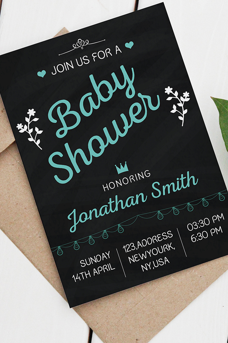Download Фирменный стиль "Chalkboard Shower Invitation - Corporate Identity Template" / Chalkboard Shower Invitation - Corporate Identity Template - Фирменный стиль на тему графика baby boy shower black colorful ms word new born party invitation psd flyer teal