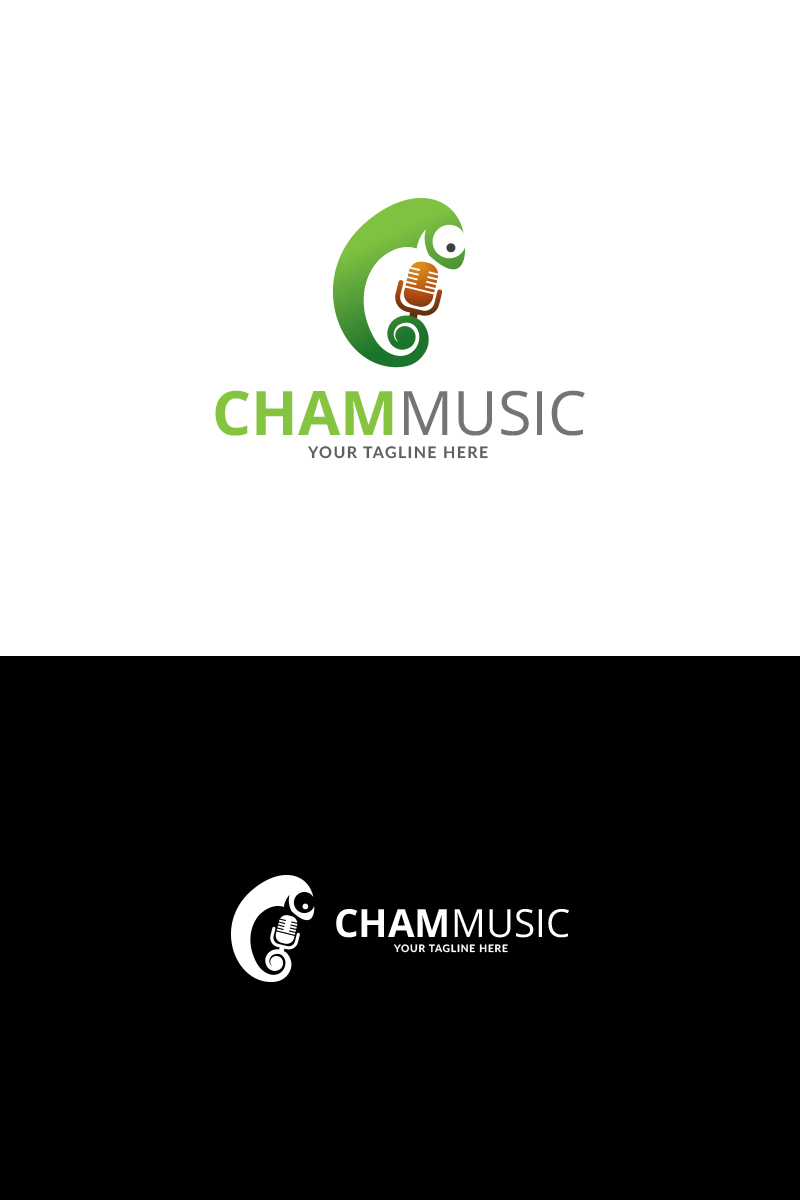 Download Шаблон логотипа "Chameleon Music Logo Template" / Chameleon Music Logo Template - Шаблон логотипа на тему графика app brand identity business cartoon chameleon color image company corporate creative cute fun green leaf lizard logo nature reptile resizable