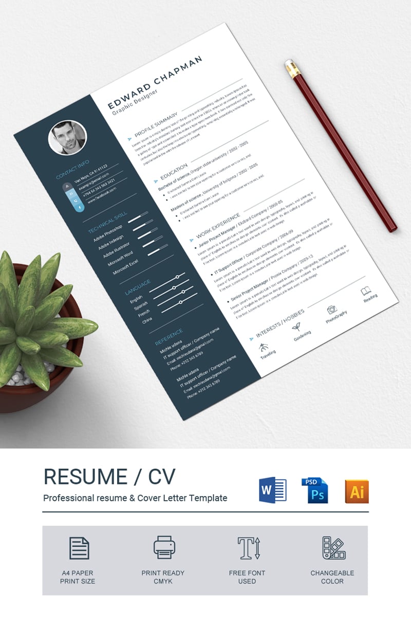 Download Резюме "Chapman Resume Template" / Chapman Resume Template - Адаптивный Резюме на тему графика a4 clean resume cv doc elegant template indesign infographic modern professional creative design minimal pages portfolio word us letter