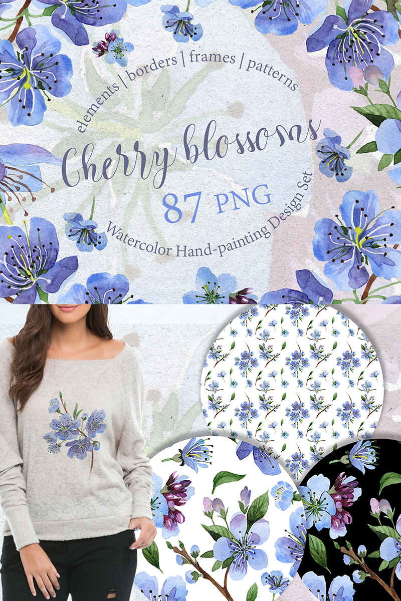 Download Юандл акварельных иллюстраций цветов вишни Png / Cherry Blossoms - PNG watercolor - Illustration - Иллюстрация на тему графика watercolor illustration delicate drawing background textile colorful drawn paint leaf plant wildflower seasonal cherry blossoms foliage flower sprout blue stem