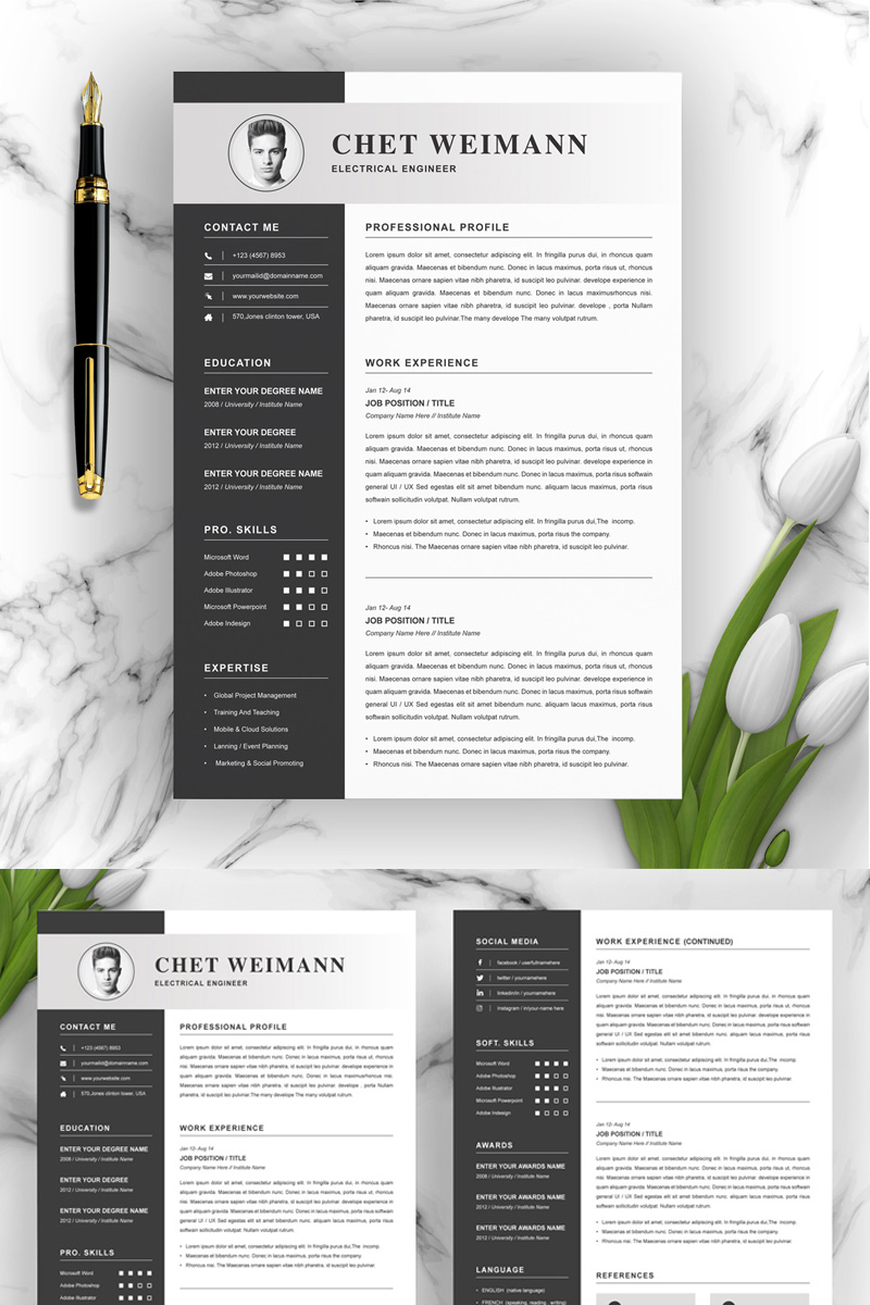Download Резюме "Chet Resume Template" / Chet Resume Template - Резюме на тему графика 2 page resume clean cv cover letter design template illustrator eps mac pages microsoft word modern photoshop psd professional