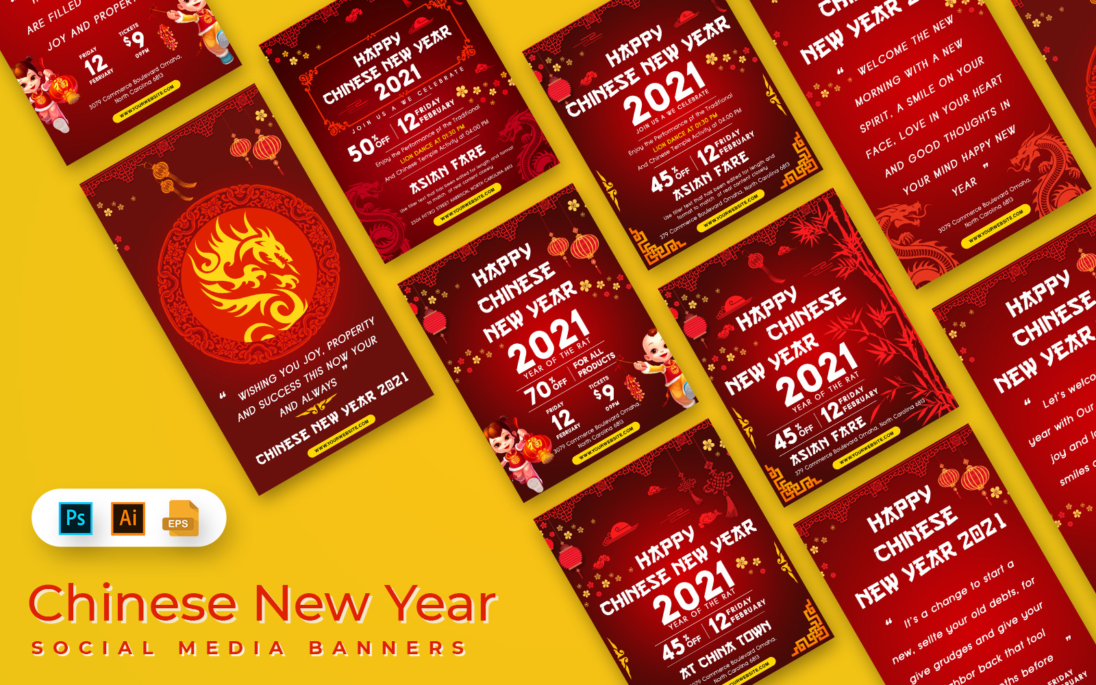 Download Шаблон для соцсетей "Chinese New Year Banner Social Media Template" / Chinese New Year Banner Social Media Template - Шаблон для соцсетей на тему графика social media banner,instagram,instagram post,feed,instagram stories,template,banners,promotion,advertisement,chinese new yer,chinese,china,new year